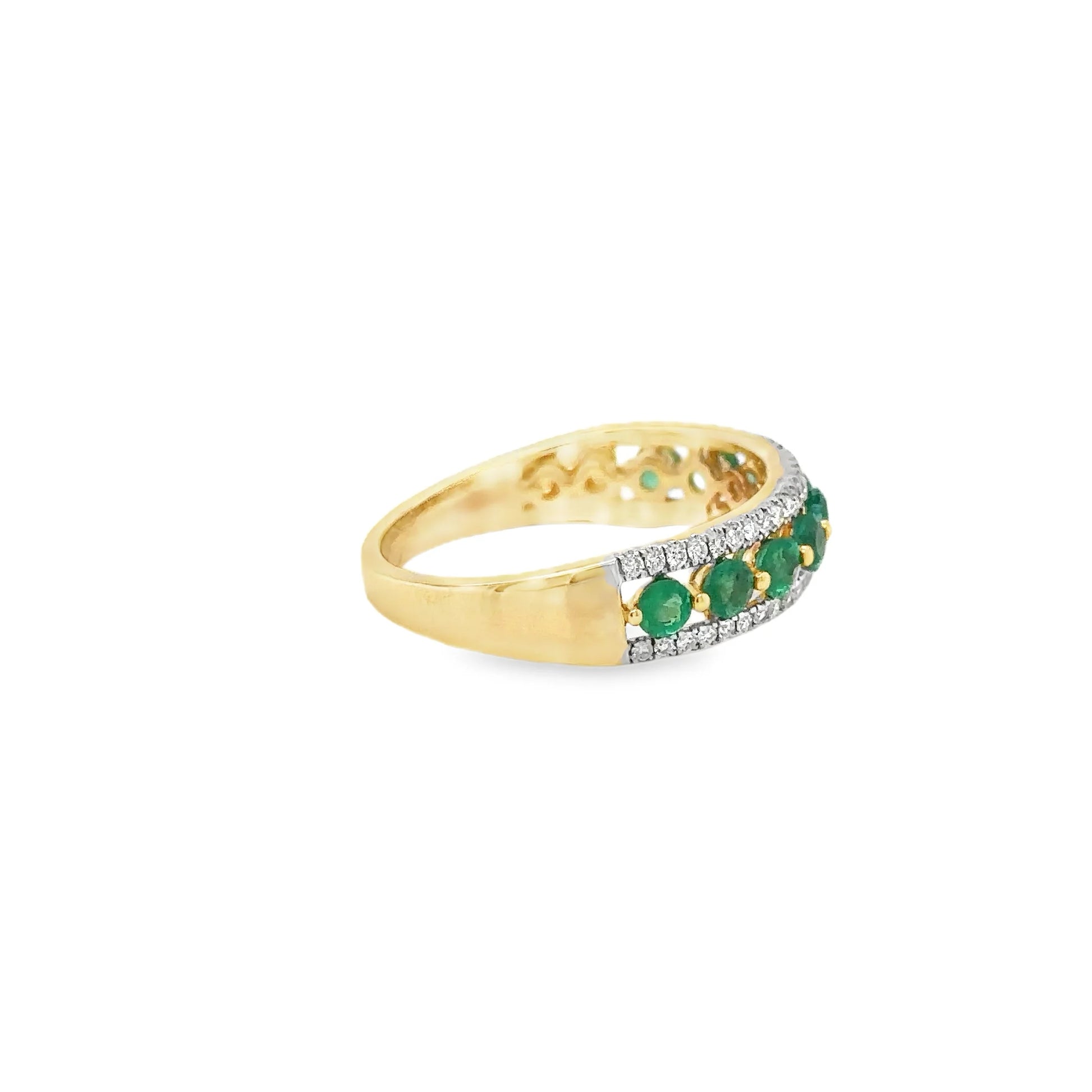 14KT YELLOW GOLD EMERALD AND DIAMONDS RING