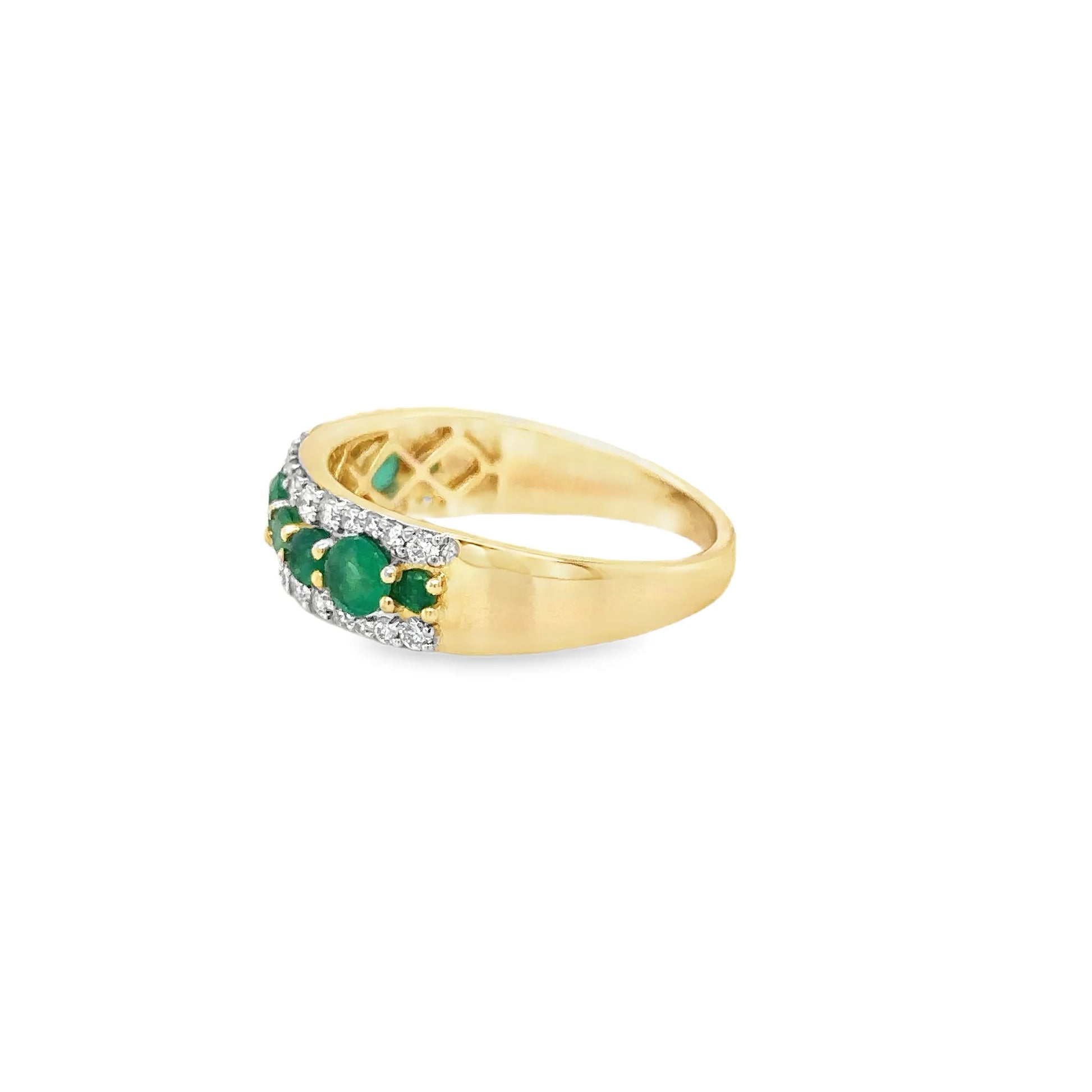 14KT YELLOW GOLD EMERALD AND DIAMONDS RING