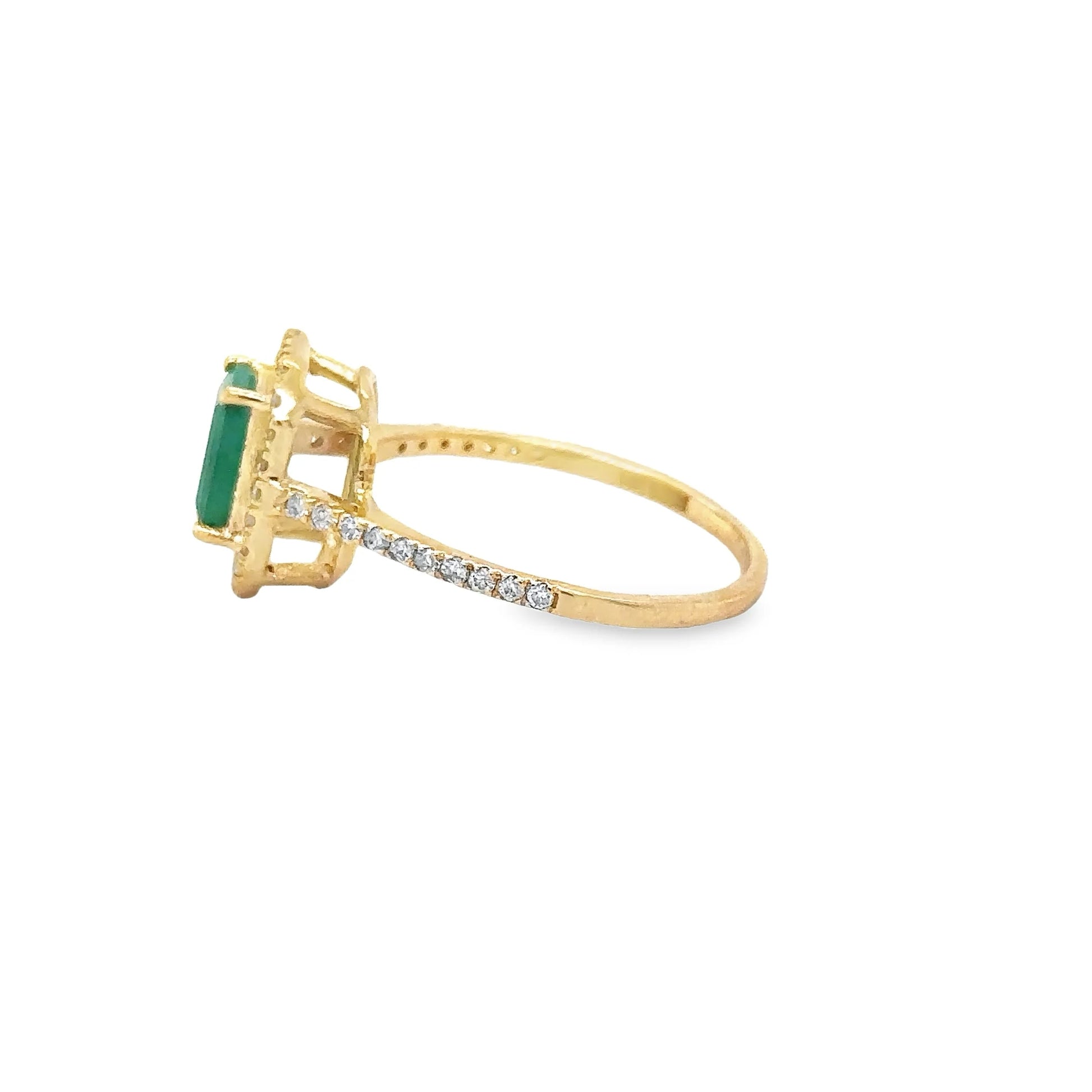 14KT YELLOW GOLD EMERALD AND DIAMONDS RING