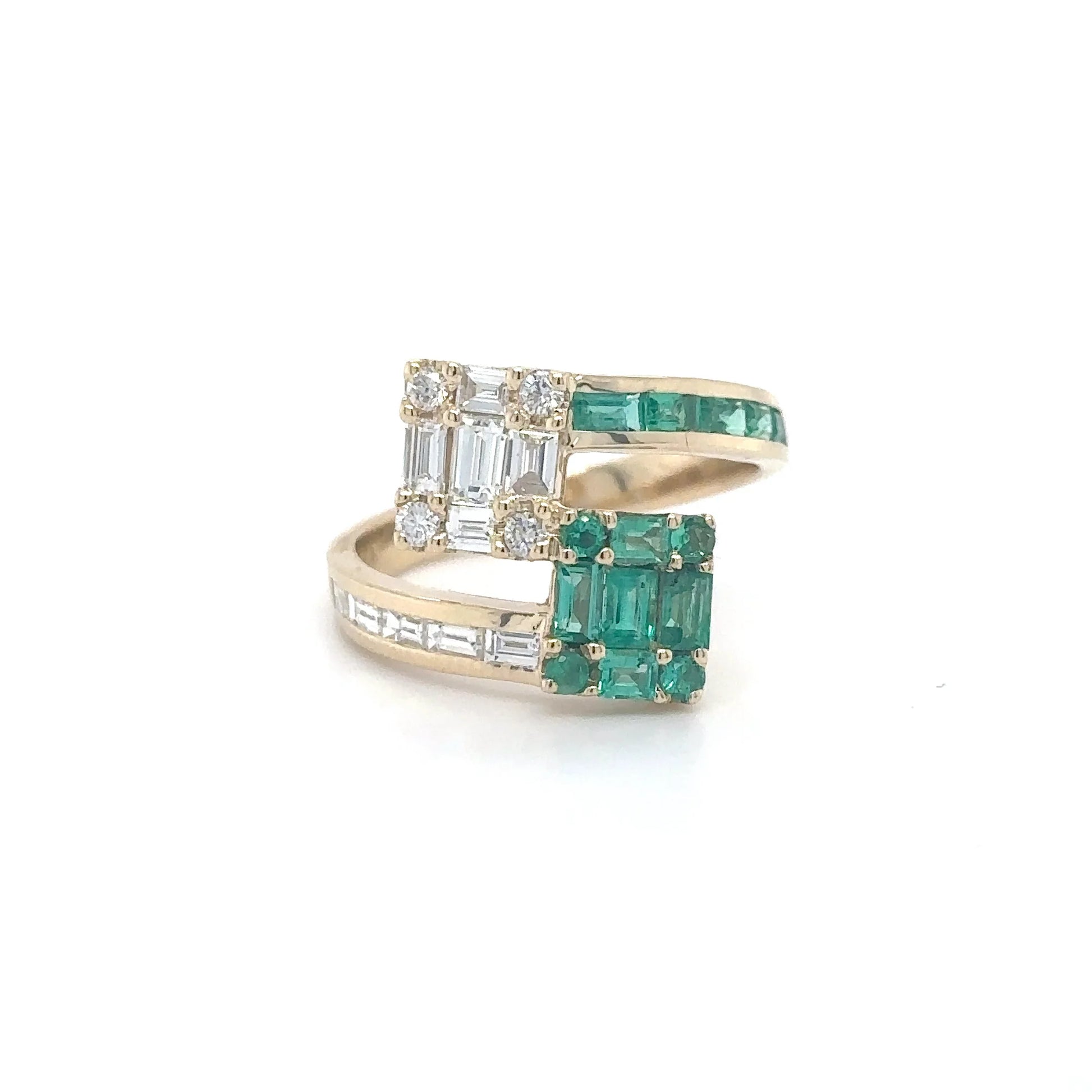 14KT YELLOW GOLD EMERALD DIAMOND RING