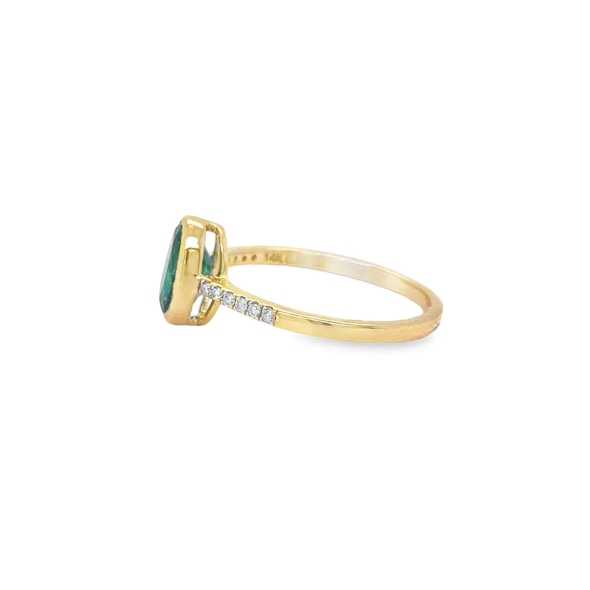 14KT YELLOW GOLD EMERALD OVAL WITH DIAMONDS RING