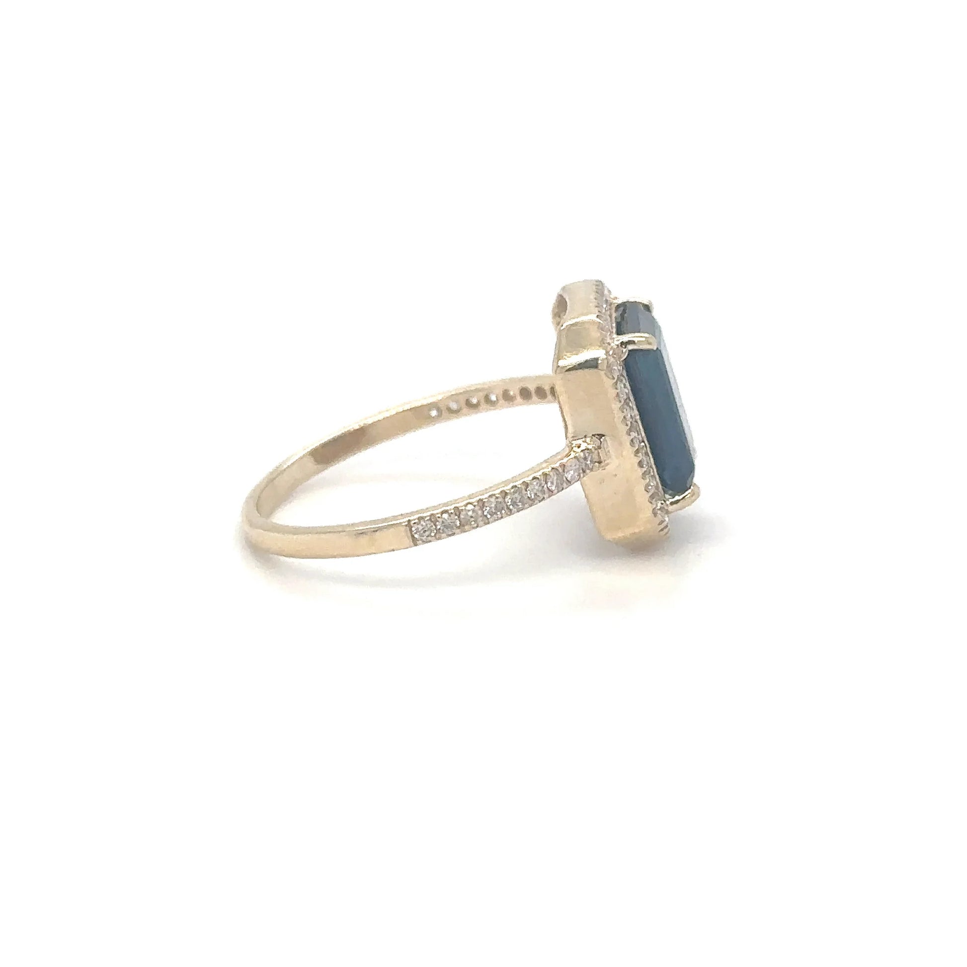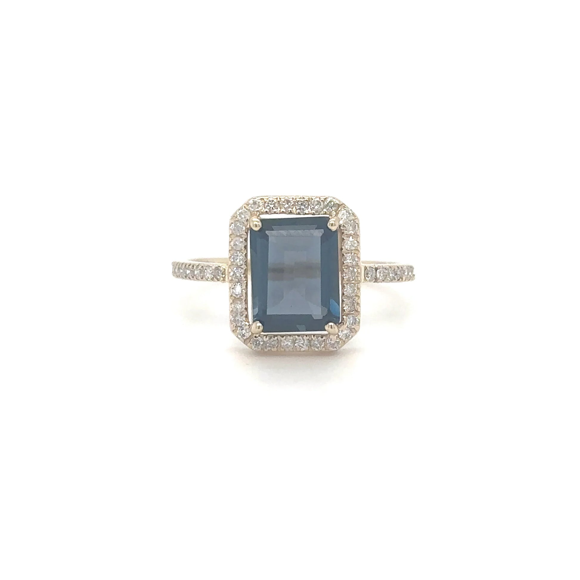 14KT YELLOW GOLD LONDON BLUE TOPAZ RING WITH DIAMONDS