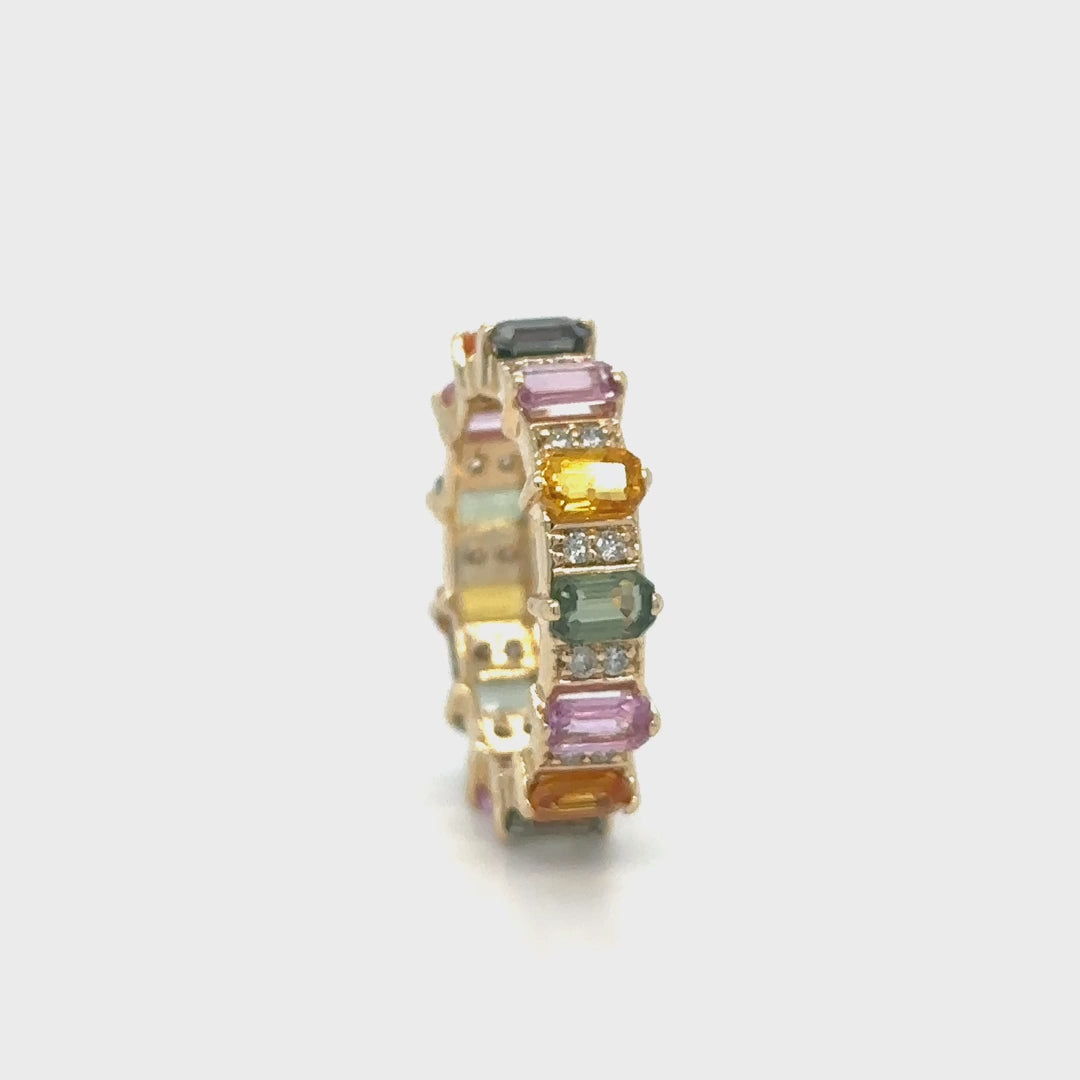 14KT YELLOW GOLD MULTI SAPPHIRE RING WITH DIAMONDS