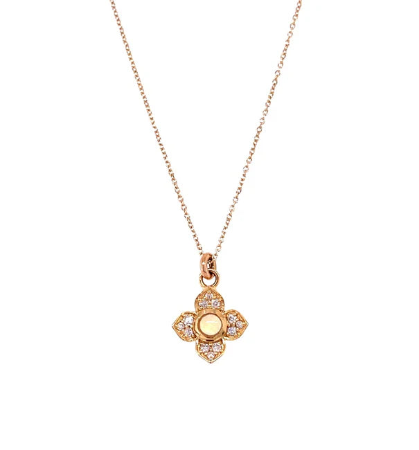 14KT YELLOW GOLD OPAL FLOWER PENDENT NECKLACE