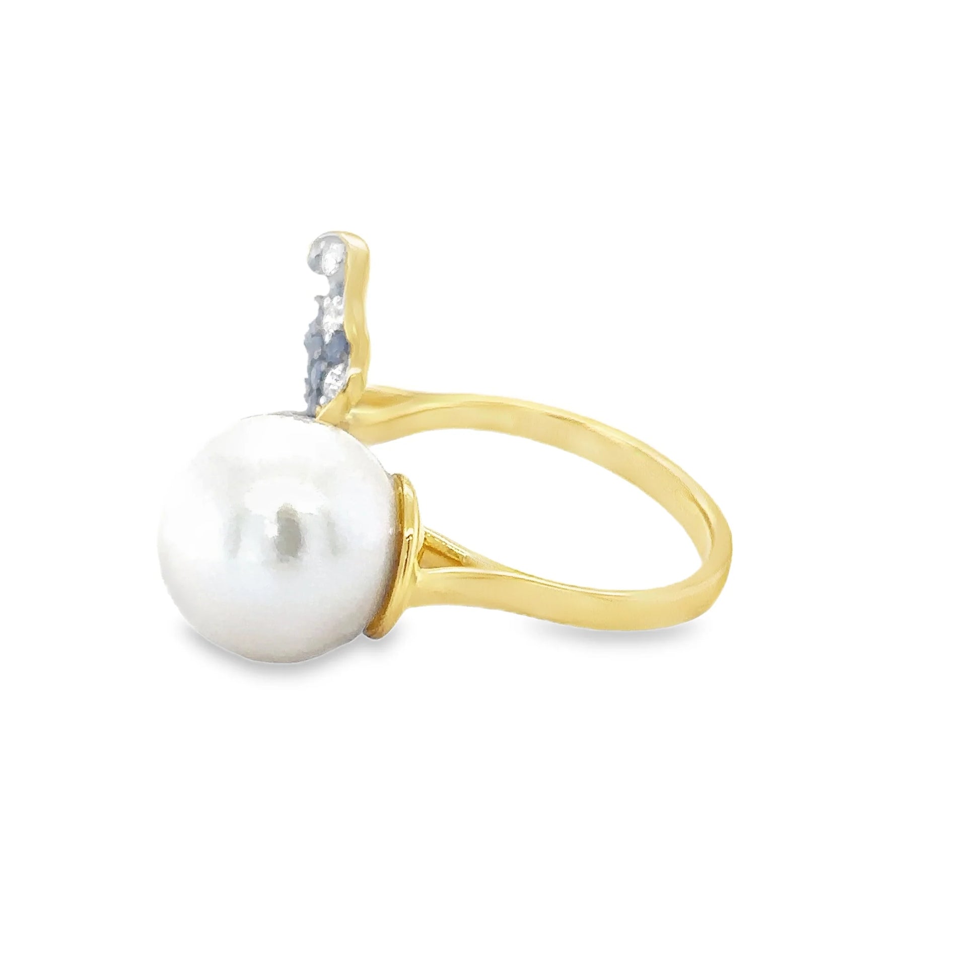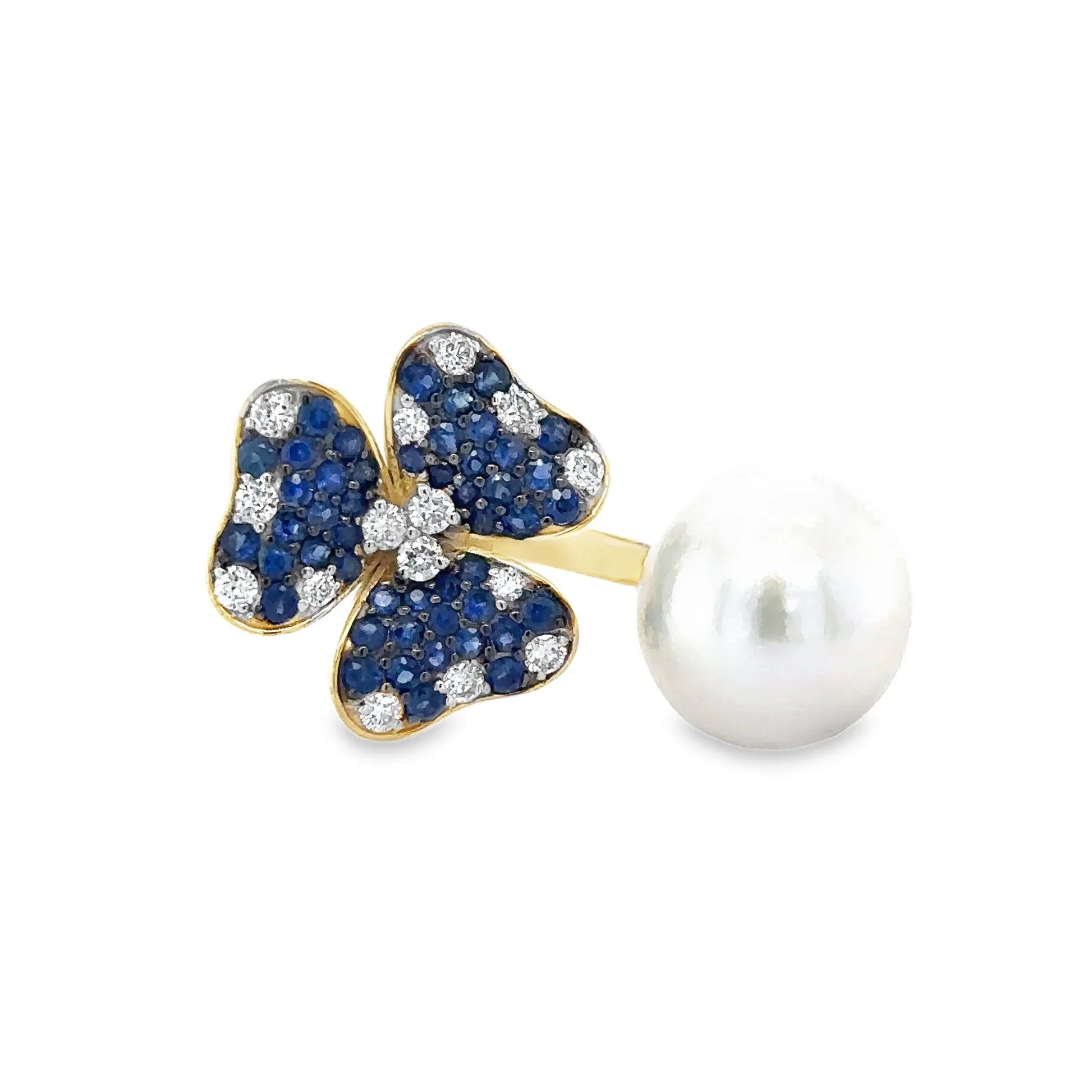 14KT YELLOW GOLD PEARL, SAPPHIRE AND DIAMOND RING