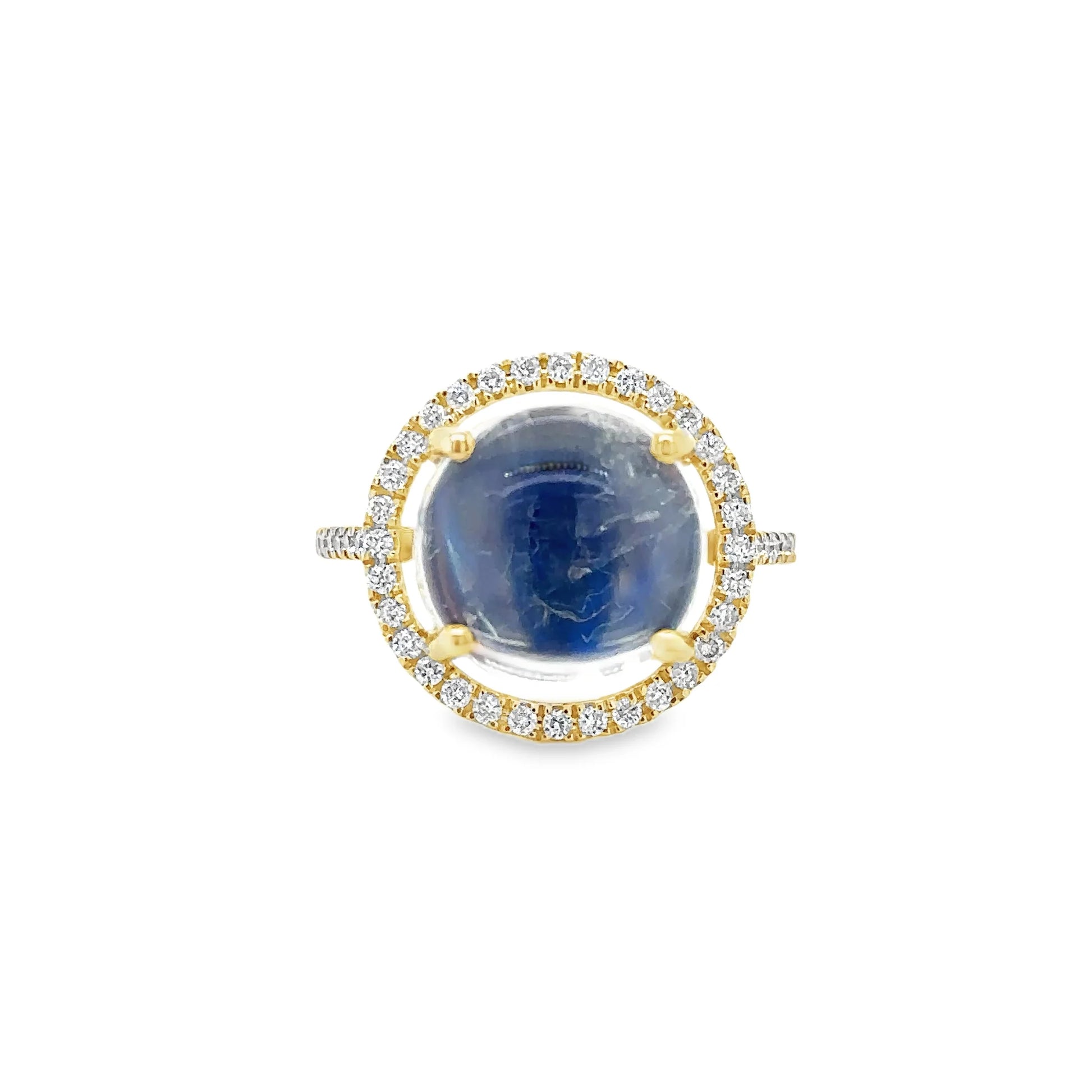 14KT YELLOW GOLD RAINBOW MOONSTONE AND DIAMONDS RING