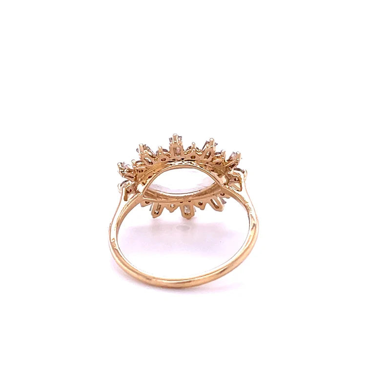 14KT YELLOW GOLD RAINBOW MOONSTONE WITH DIAMONDS RING