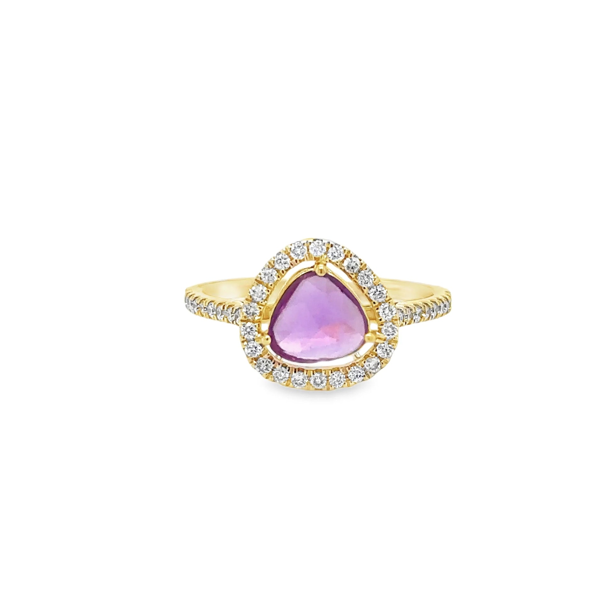14KT YELLOW GOLD ROSE CUT SAPPHIRE AND DIAMONDS RING