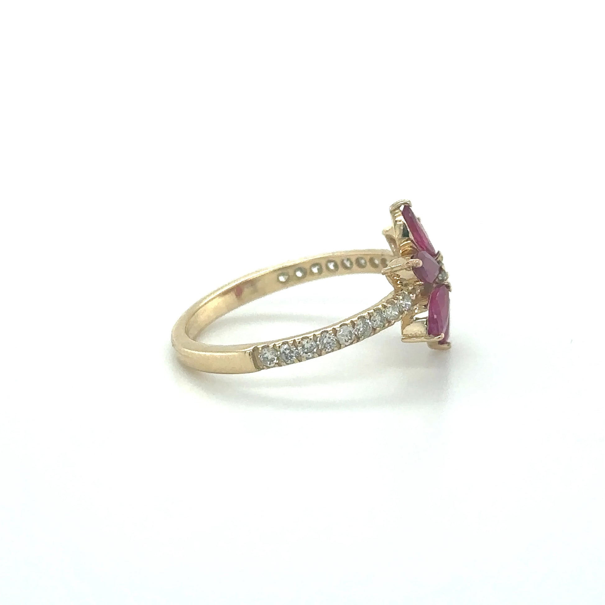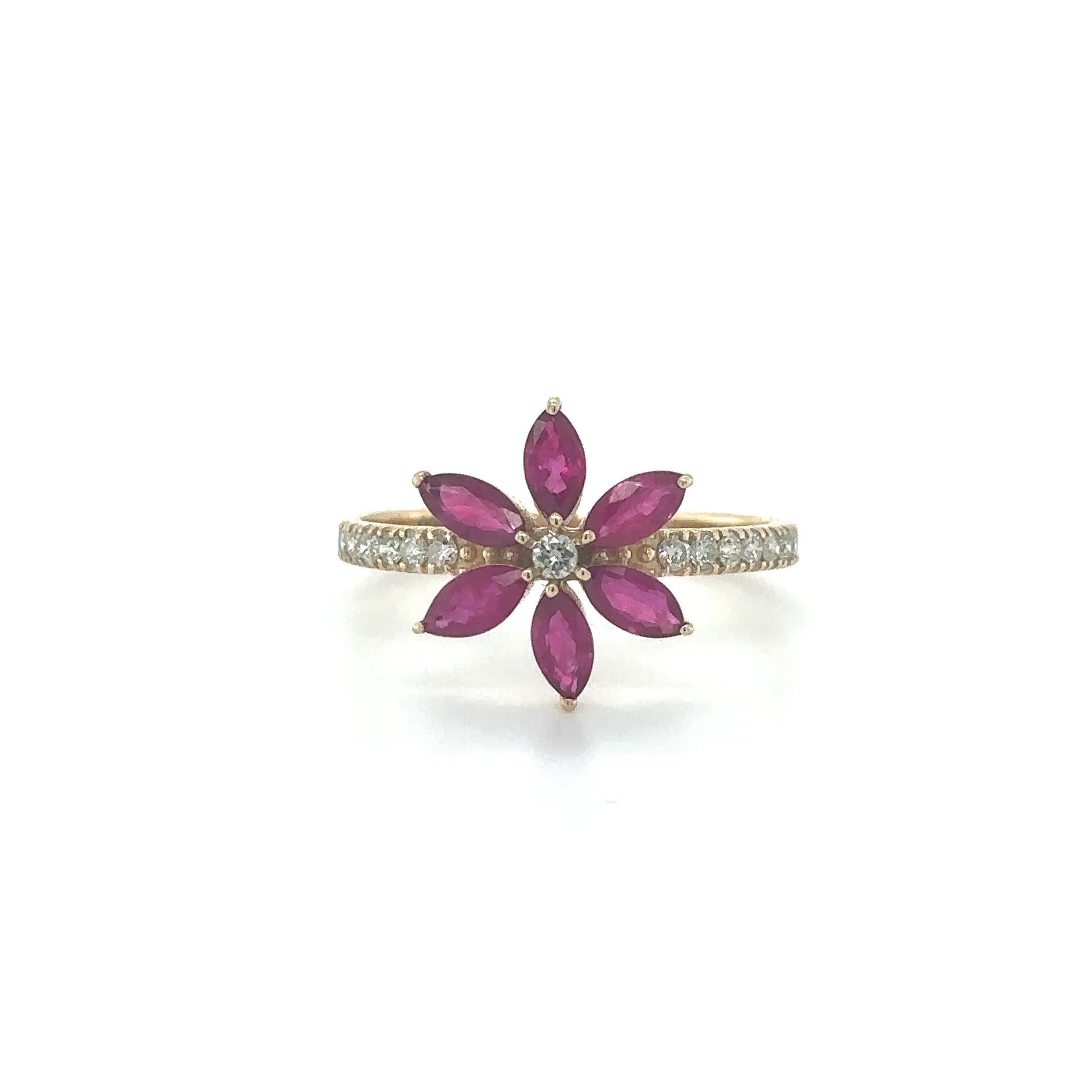14KT YELLOW GOLD STAR RING WITH RUBY AND DIAMOND