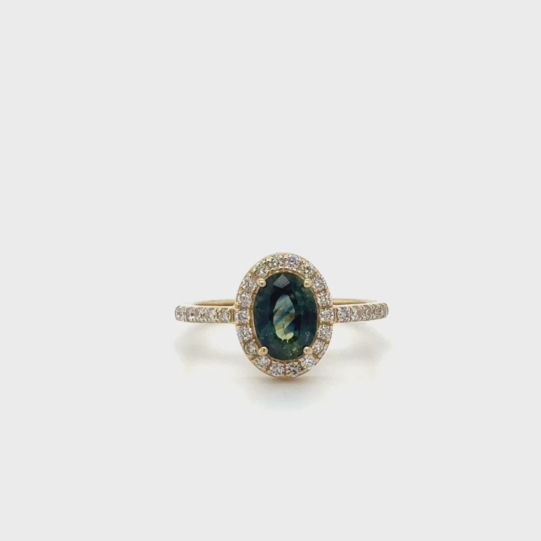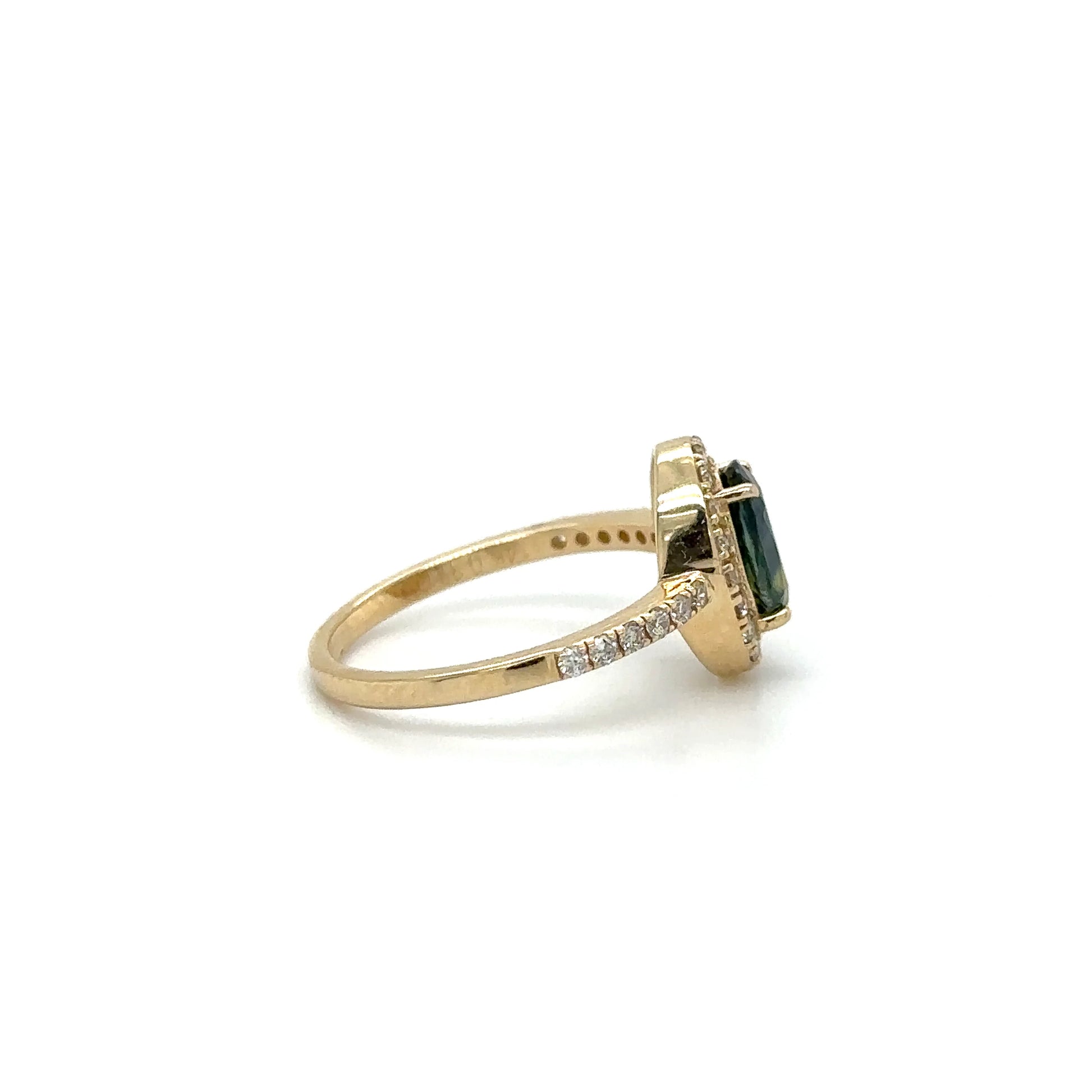 14KT YELLOW GOLD TILT SAPPHIRE RING WITH DIAMONDS