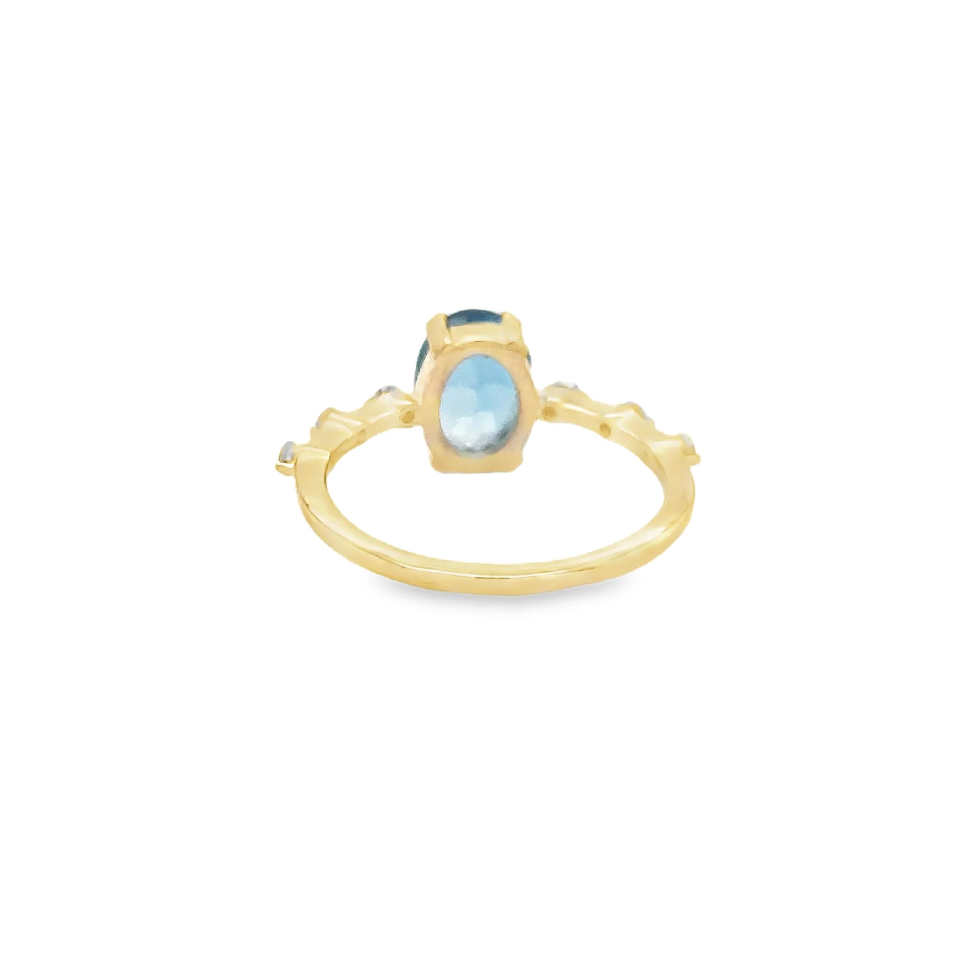 14KT YELLOW GOLD TOPAZ AND DIAMONDS RING