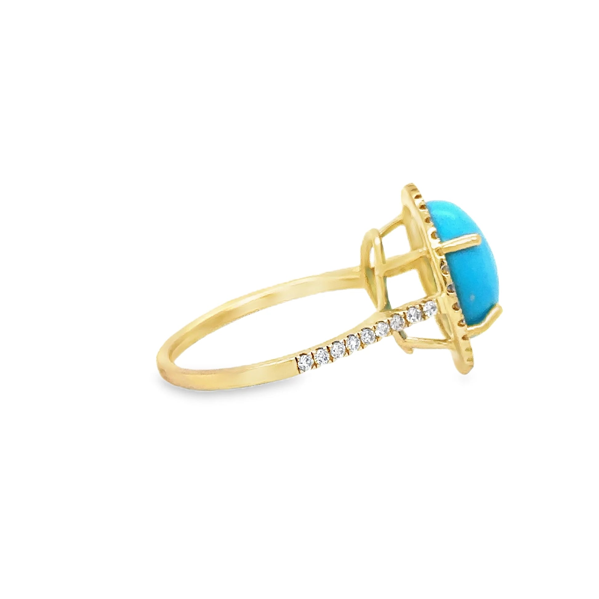 14KT YELLOW GOLD TURQUOISE AND DIAMONDS RING