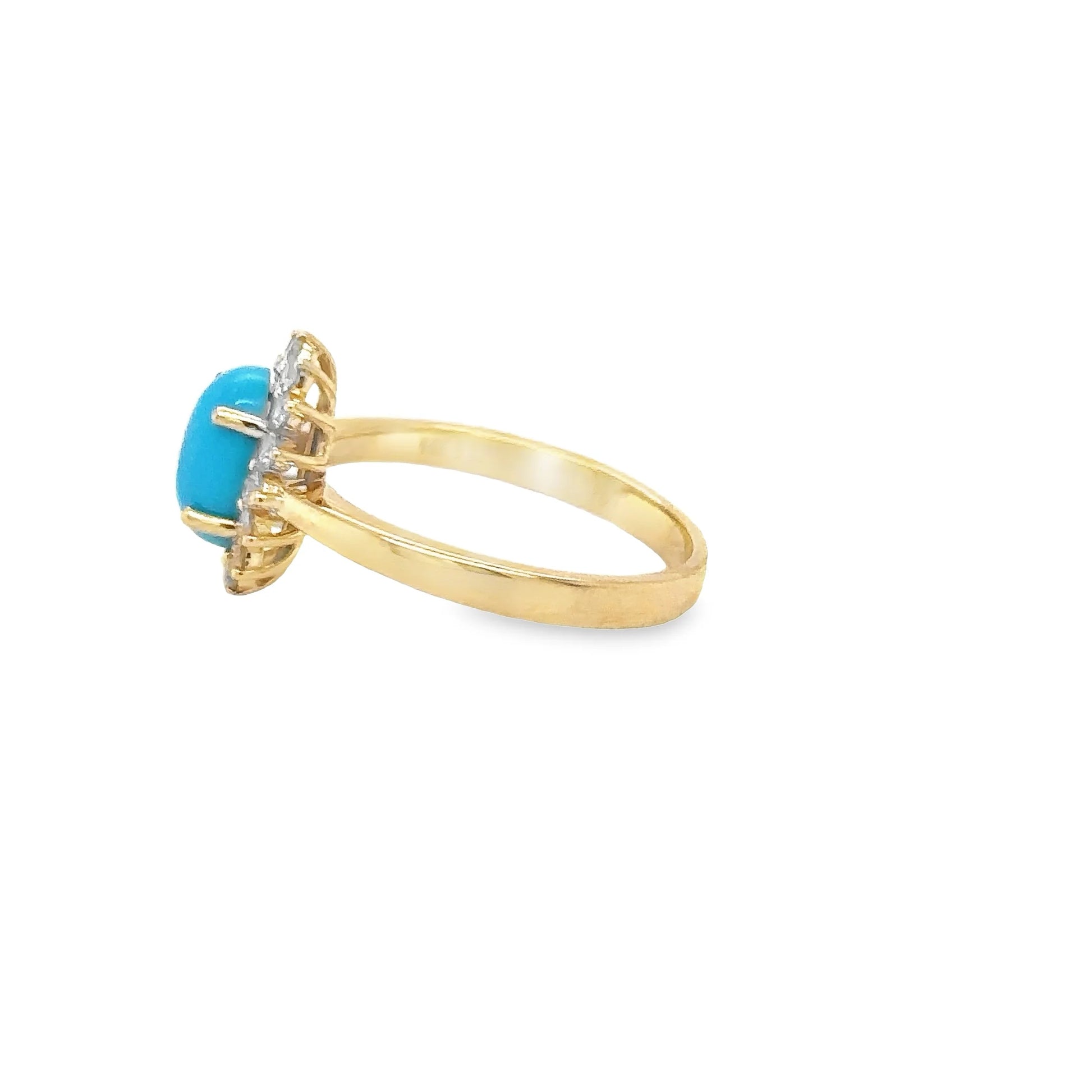14KT YELLOW GOLD TURQUOISE RING WITH DIAMONDS