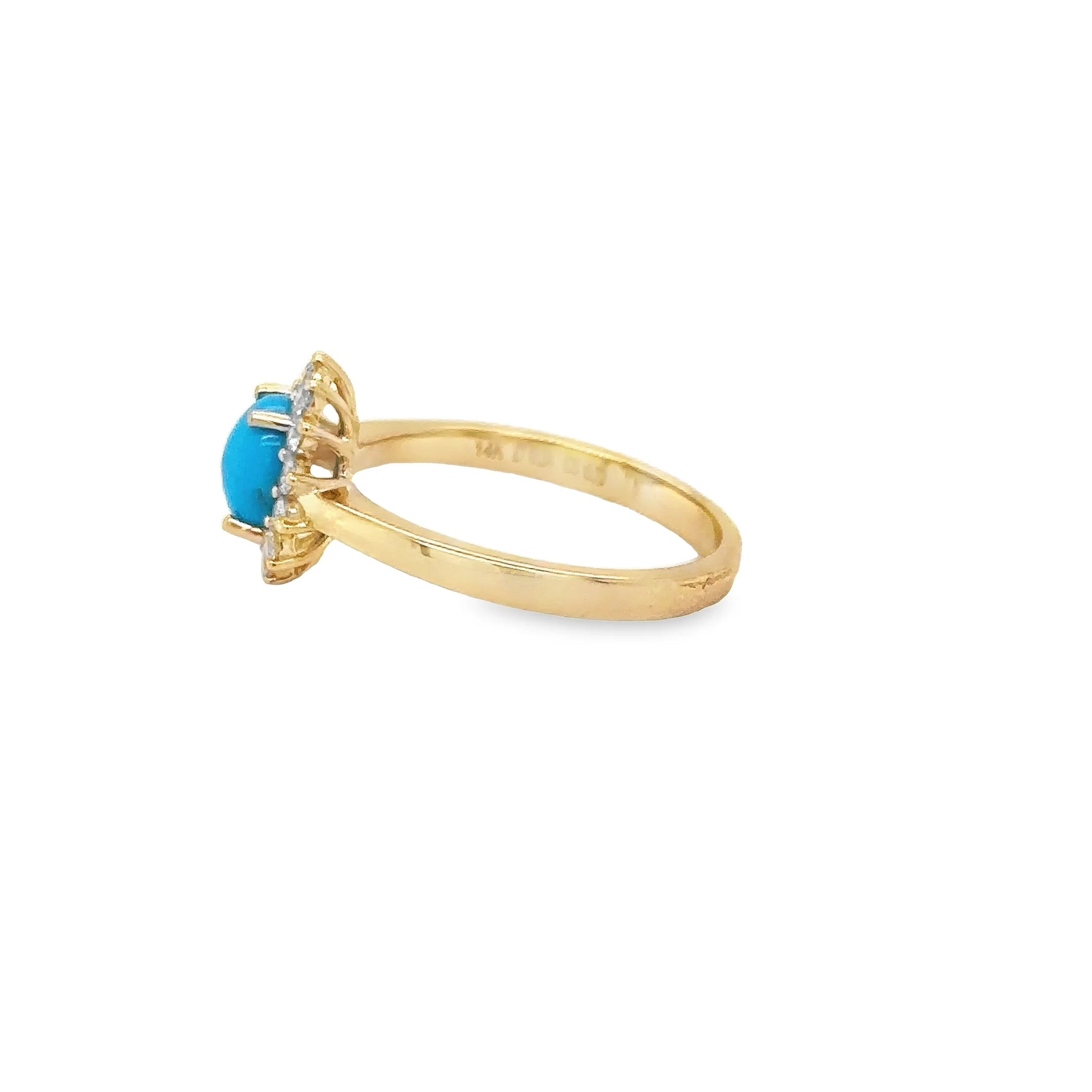 14KT YELLOW GOLD TURQUOISE RING WITH DIAMONDS