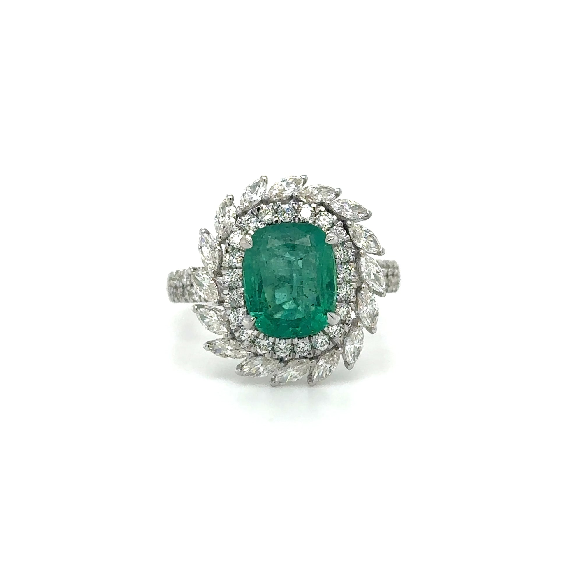18K WHITE GOLD EMERALD AND DIAMOND RING