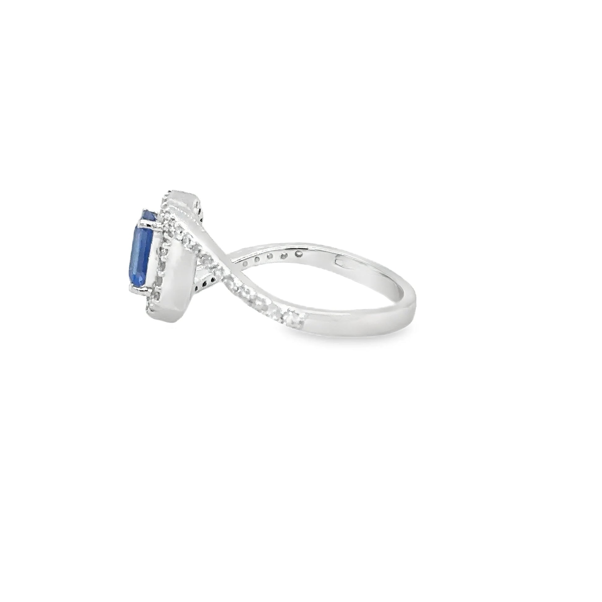 18KT WHITE GOLD BLUE SAPPHIRE AND DIAMONDS RING