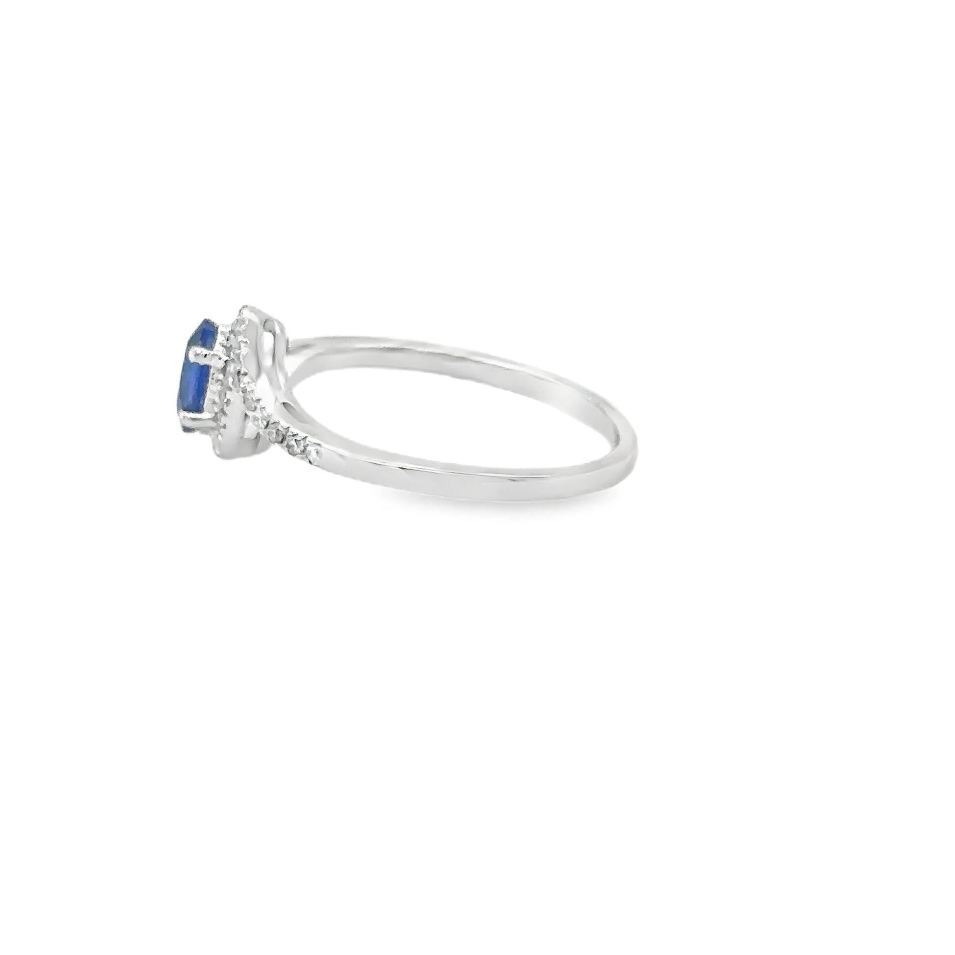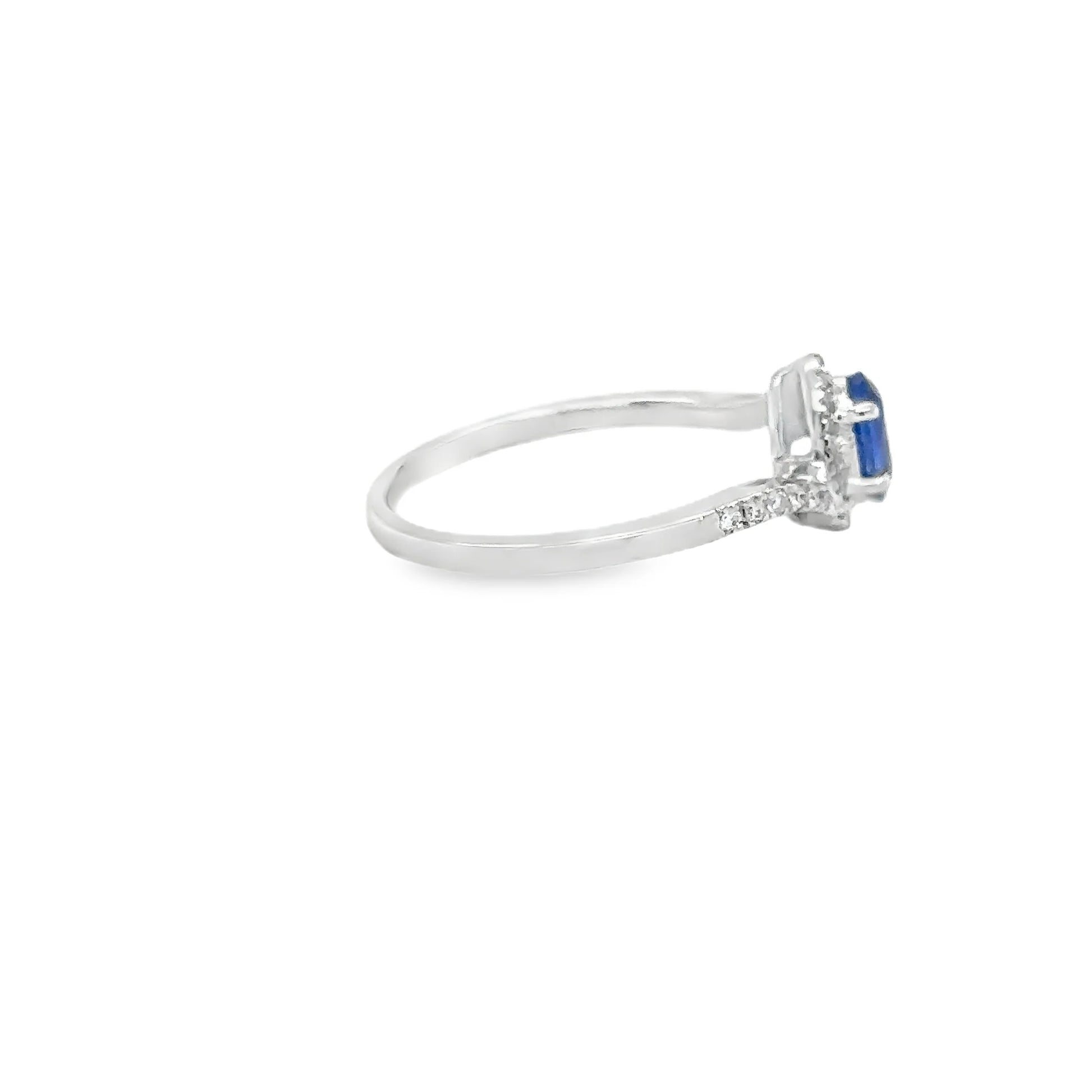 18KT WHITE GOLD BLUE SAPPHIRE AND DIAMONDS RING