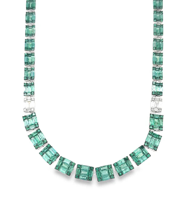 18KT WHITE GOLD EMERALD AND DIAMOND NECKLACE