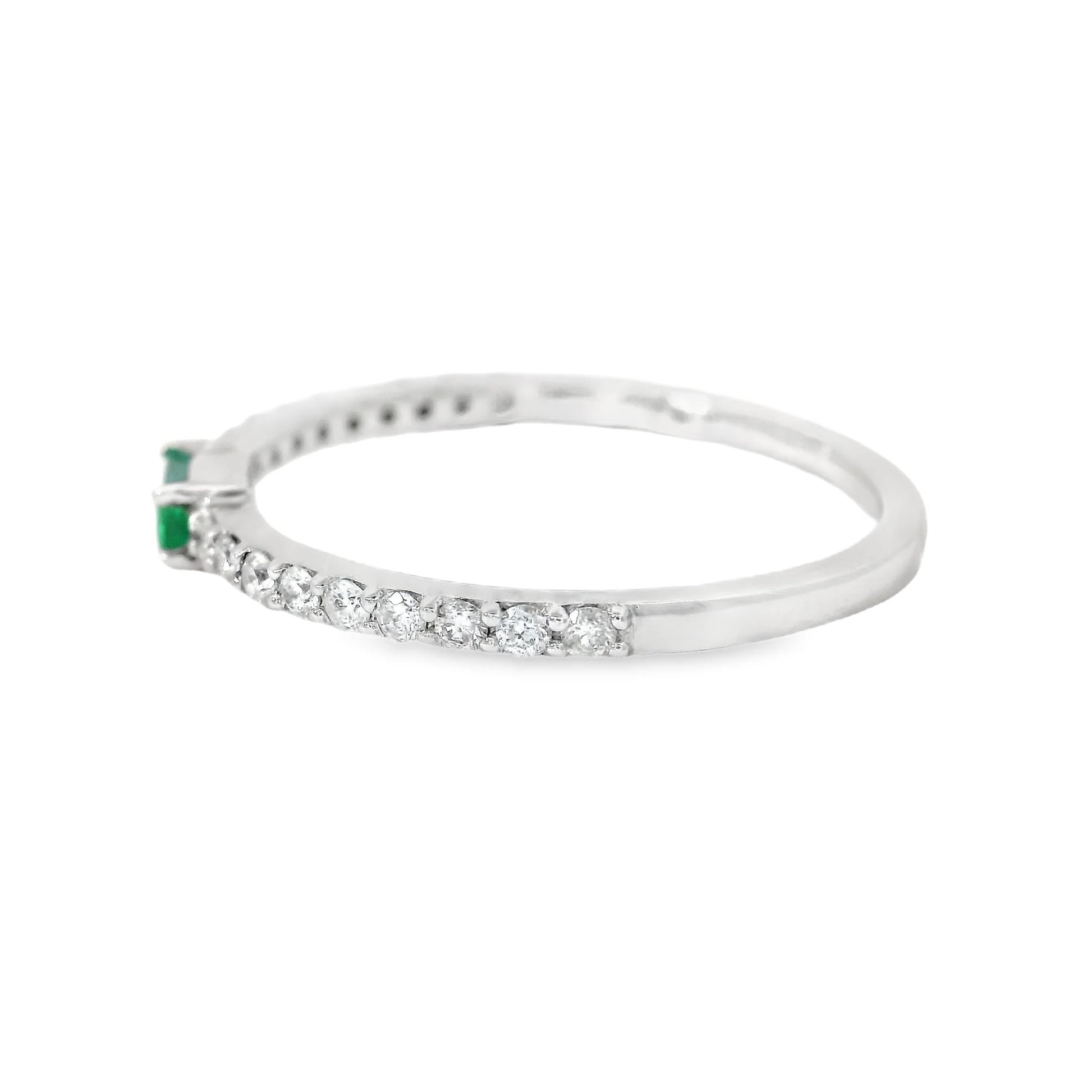 18KT WHITE GOLD EMERALD AND DIAMOND RING