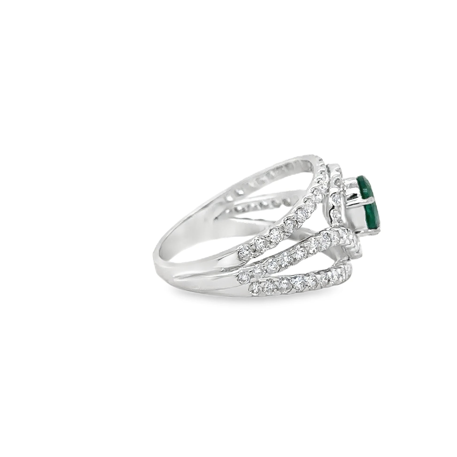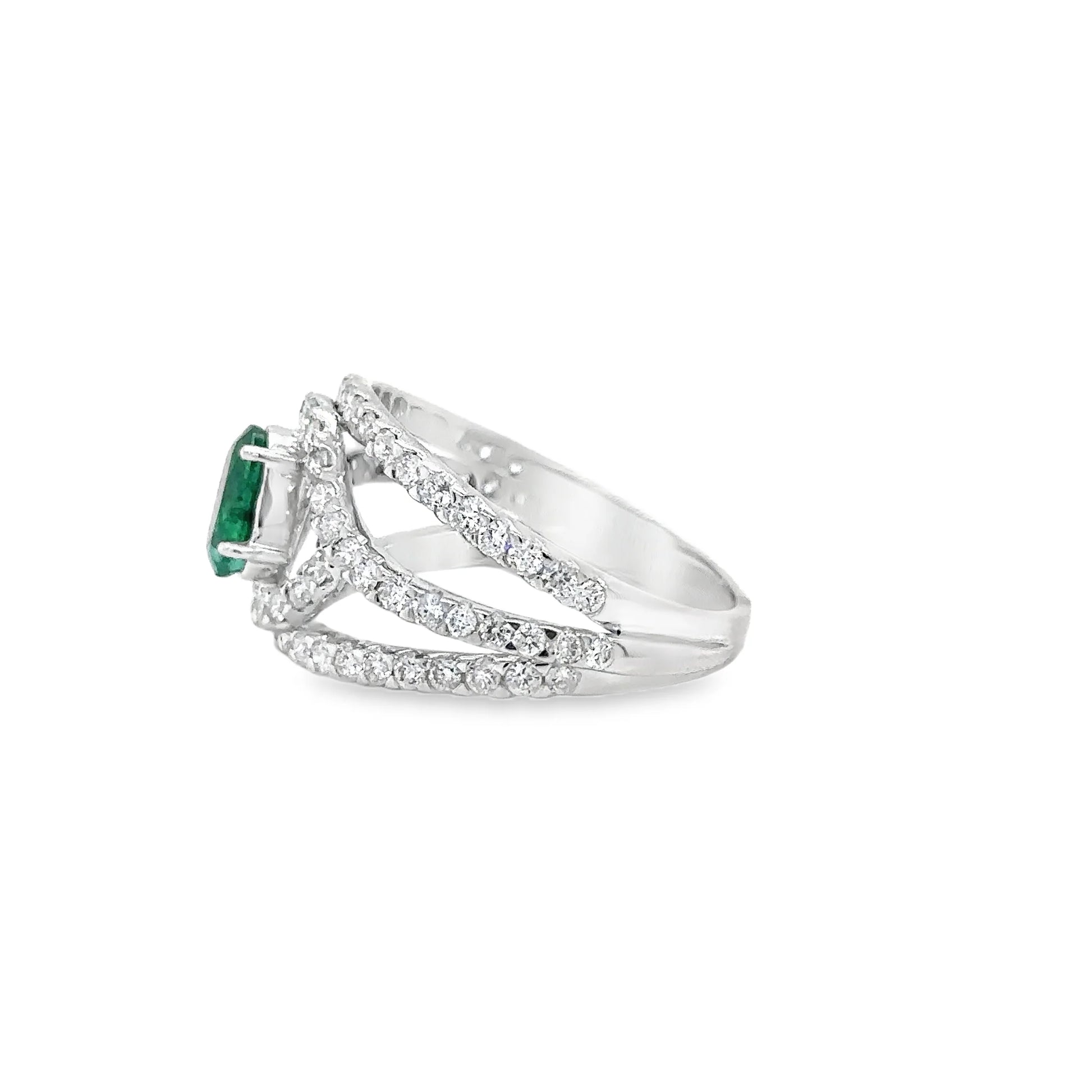 18KT WHITE GOLD EMERALD AND DIAMONDS RING