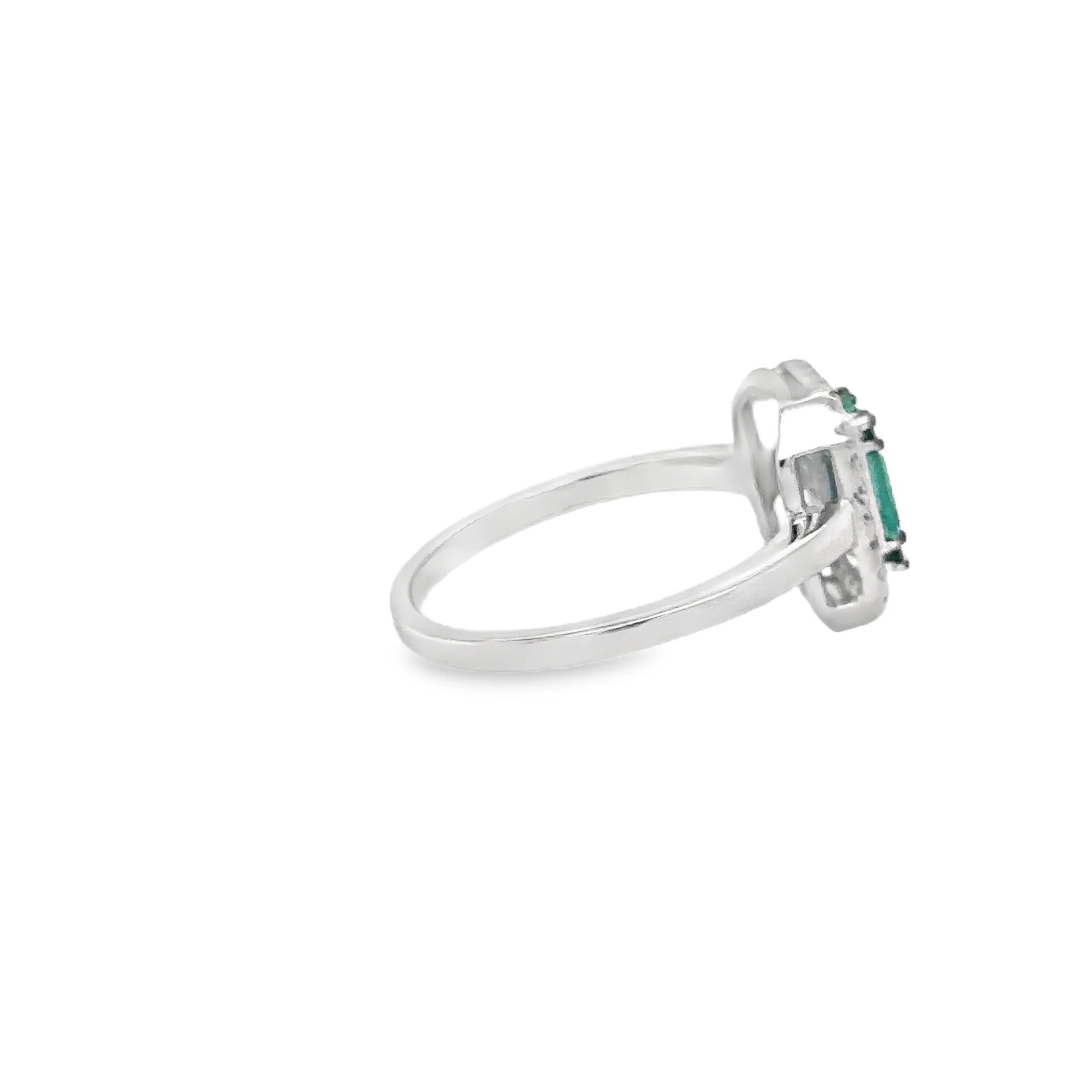 18KT WHITE GOLD EMERALD AND DIAMONDS RING