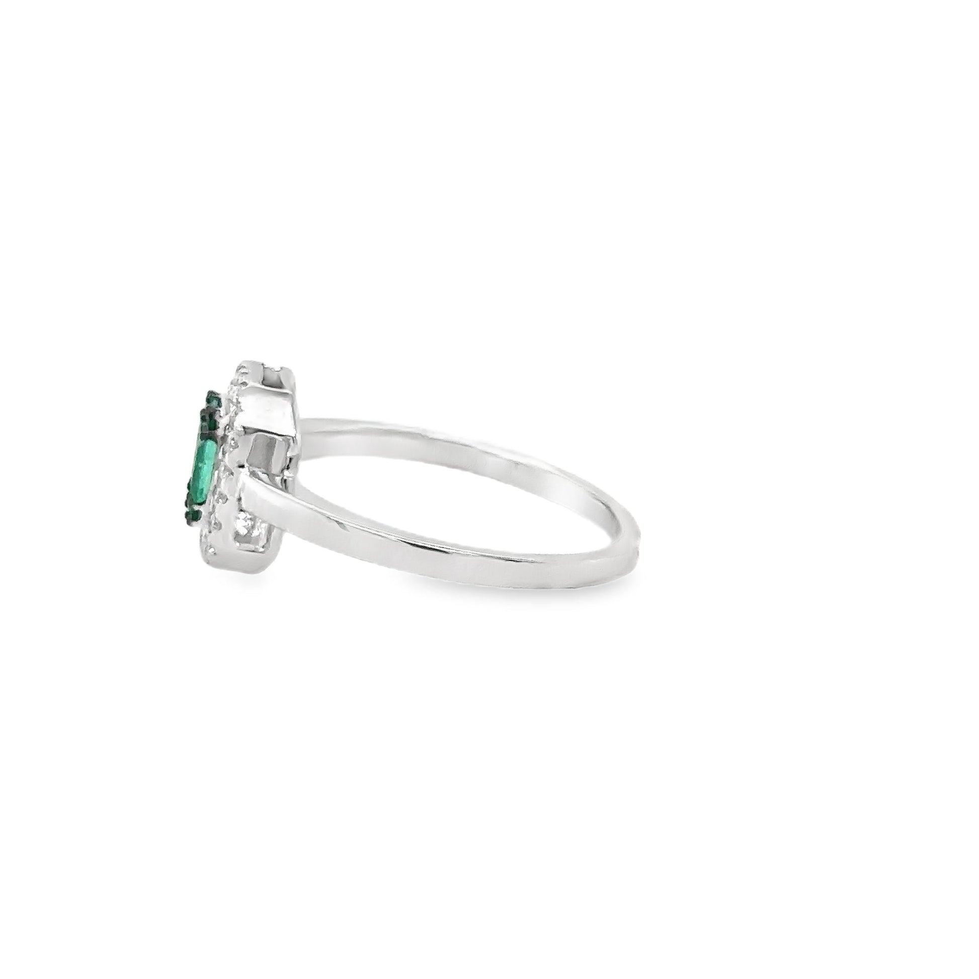 18KT WHITE GOLD EMERALD AND DIAMONDS RING