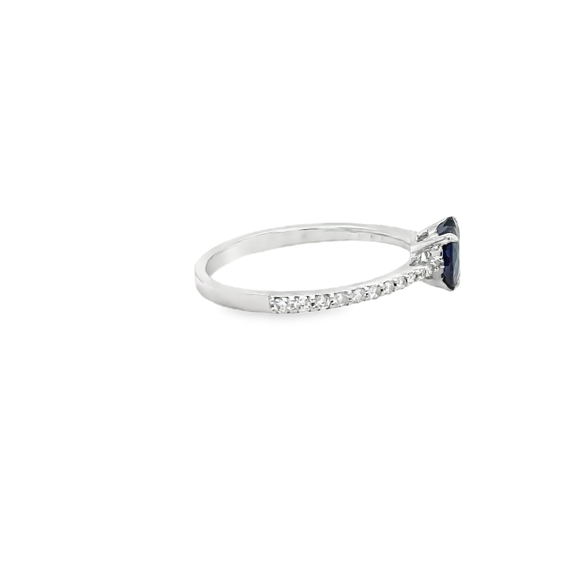 18KT WHITE GOLD HEART BLUE SAPPHIRE AND DIAMONDS RING
