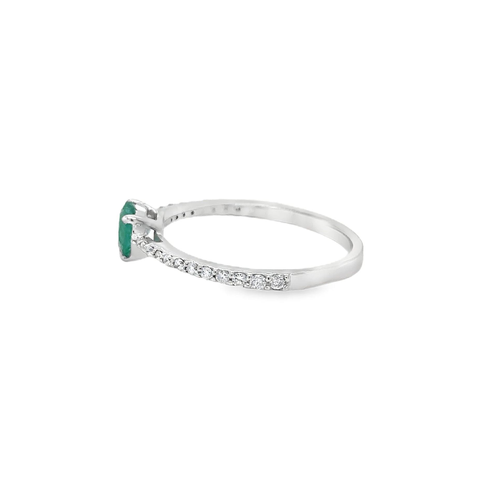18KT WHITE GOLD HEART SHAPED EMERALD DIAMOND RING