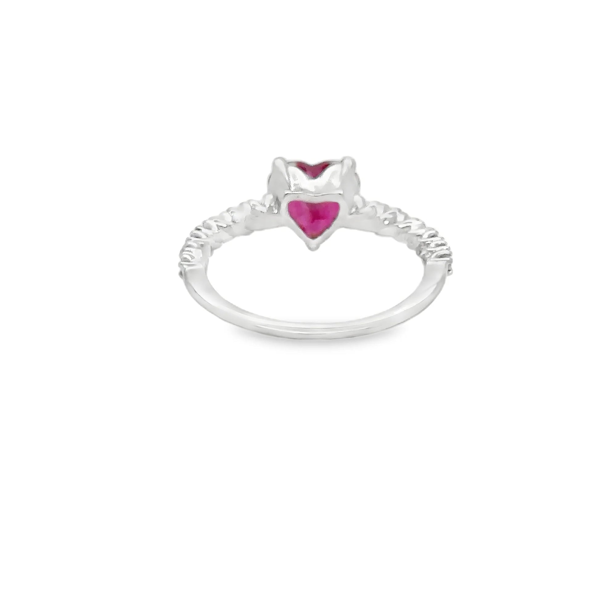 18KT WHITE GOLD HEART SHAPED RUBY DIAMOND RING