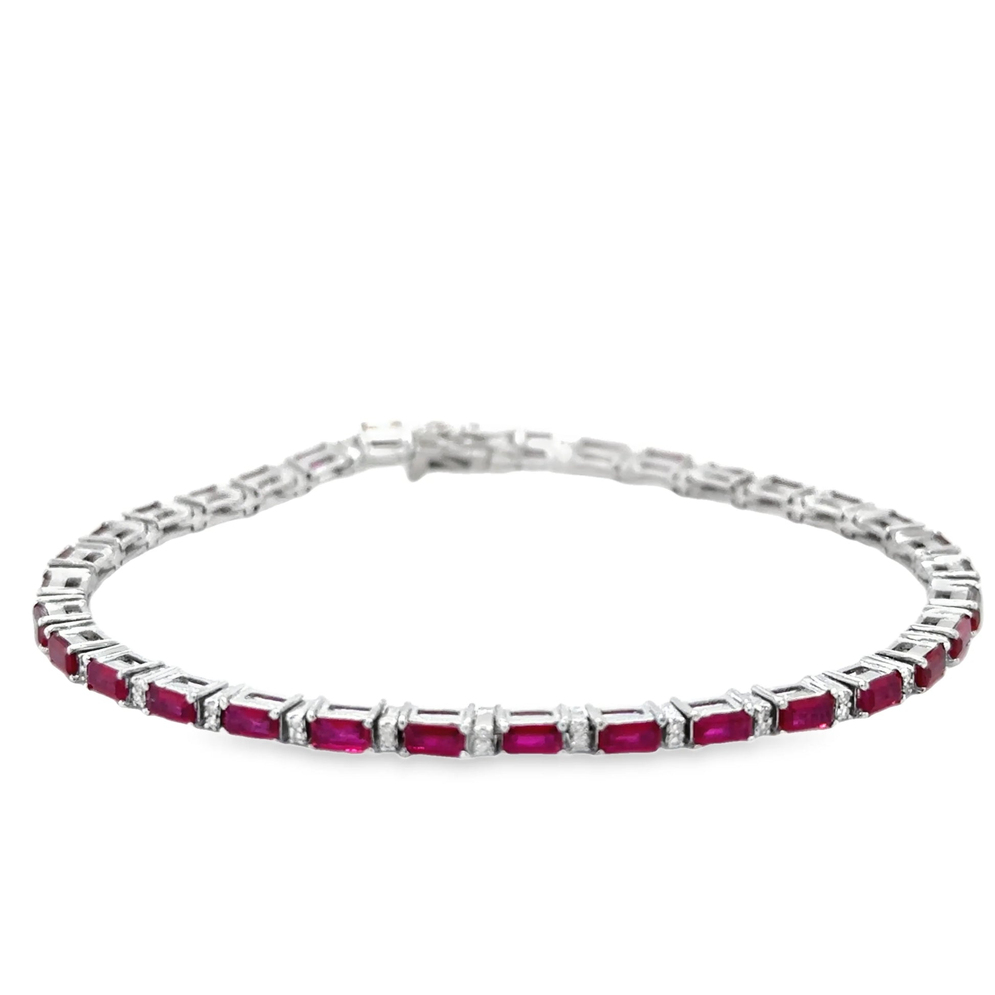 18KT WHITE GOLD RUBY AND DIAMOND BRACELET 7"