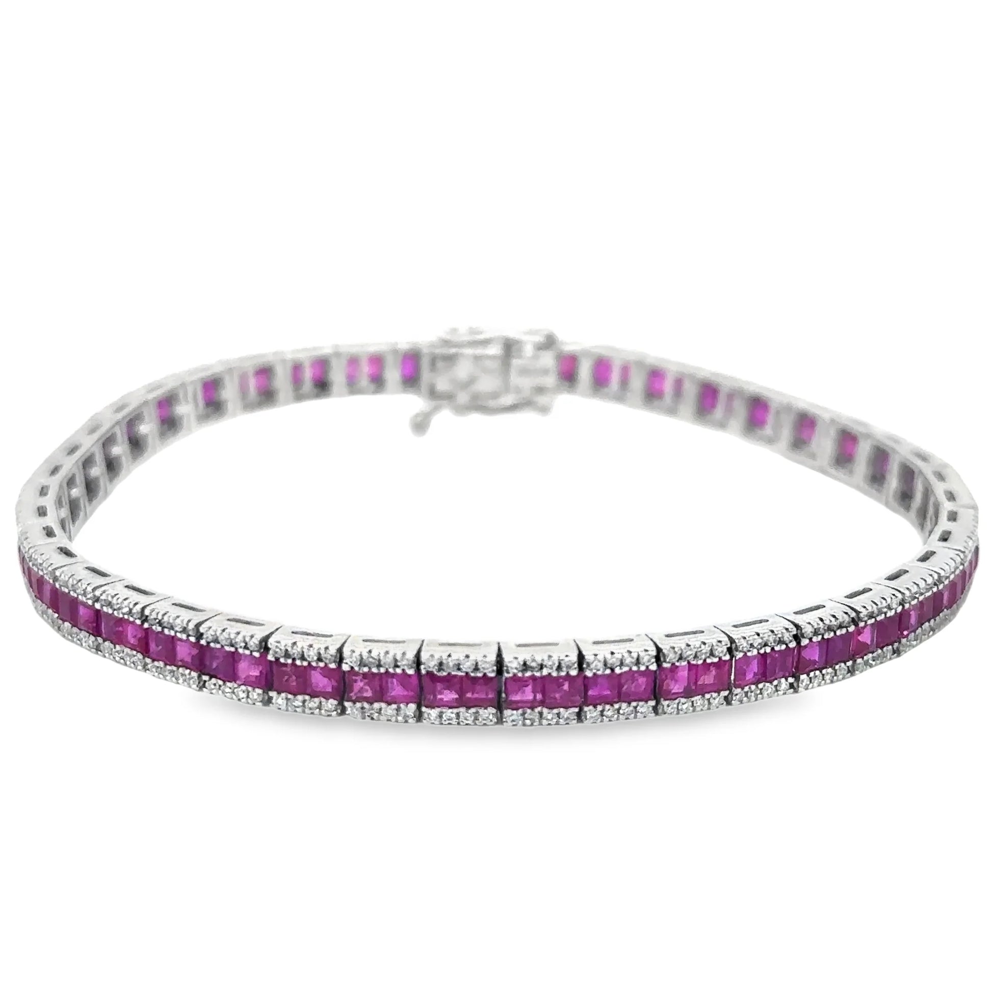 18KT WHITE GOLD RUBY AND DIAMONDS BRACELET 7"