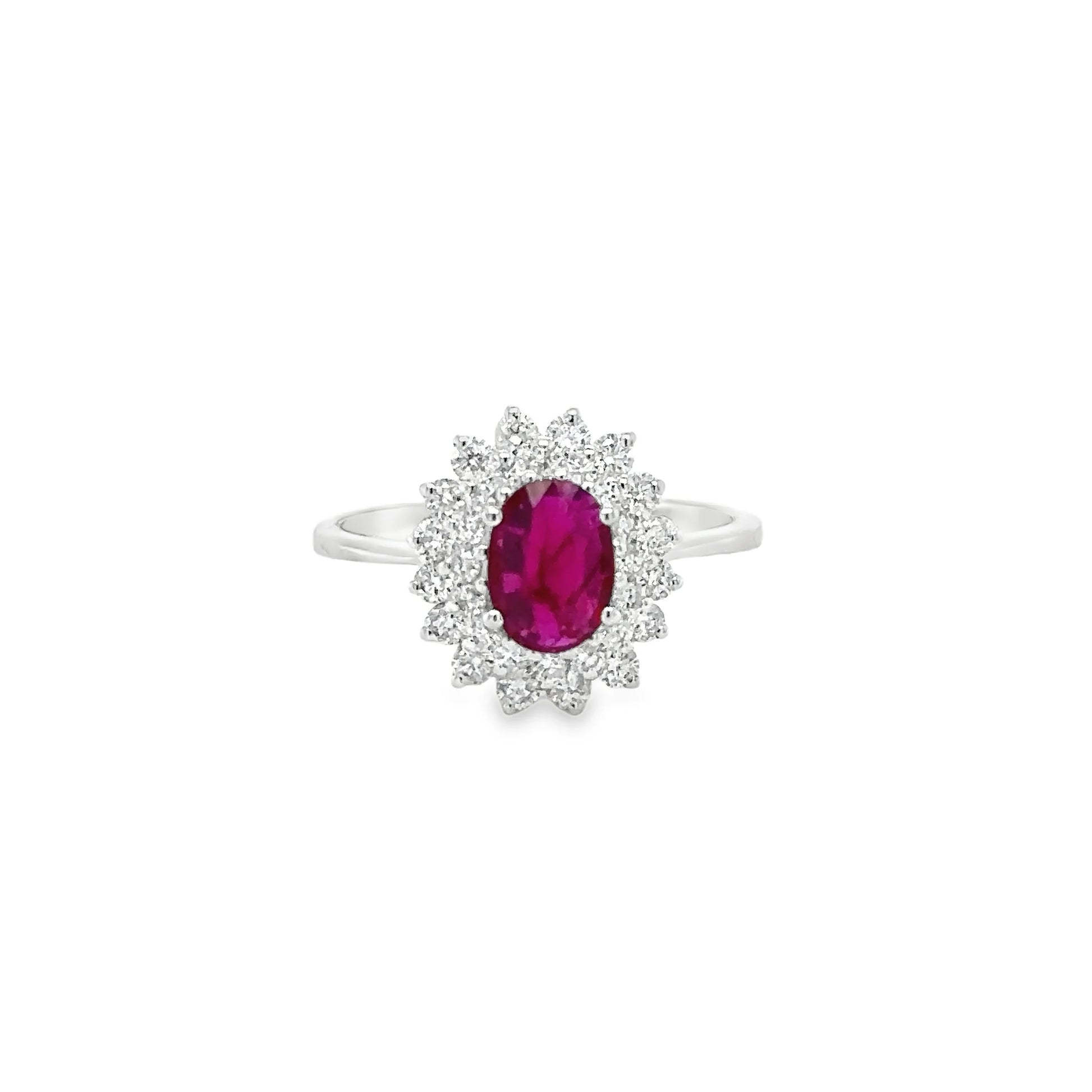18KT WHITE GOLD RUBY AND DIAMONDS RING