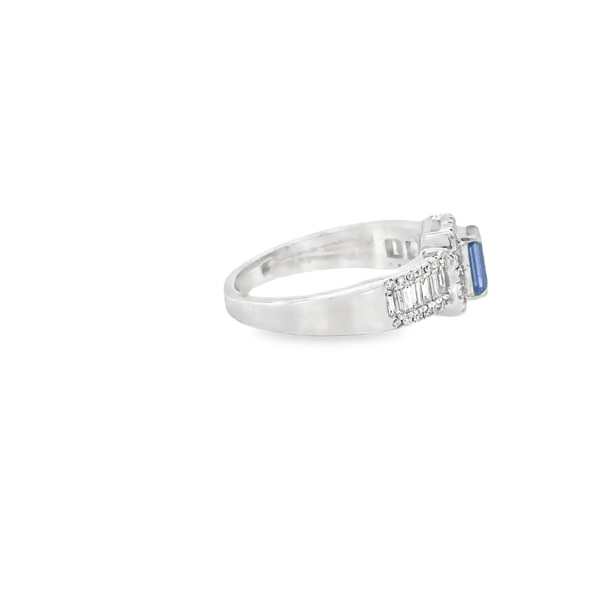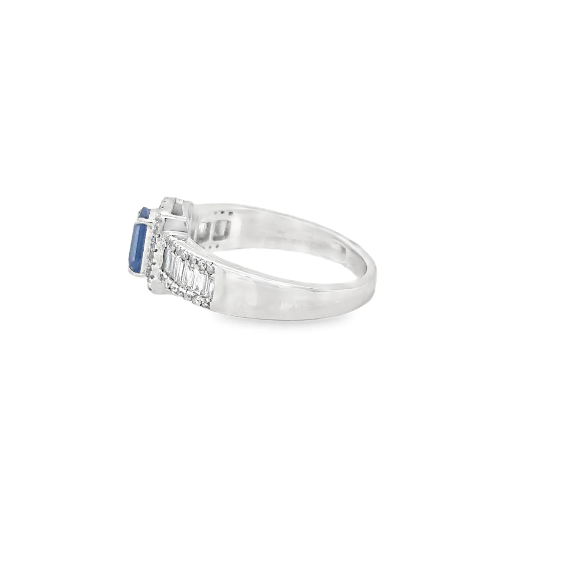 18KT WHITE GOLD SAPPHIRE AND DIAMONDS RING