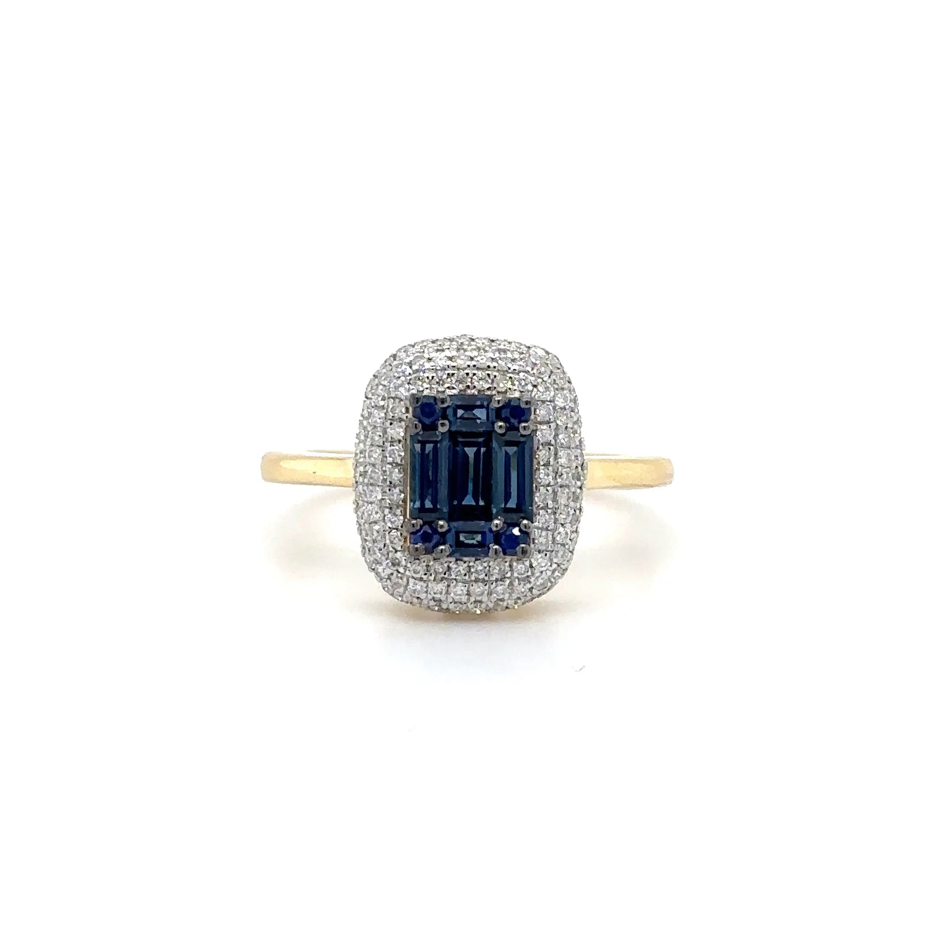 18KT YELLOW GOLD BAGUETTE SAPPHIRE AND DIAMONDS RING