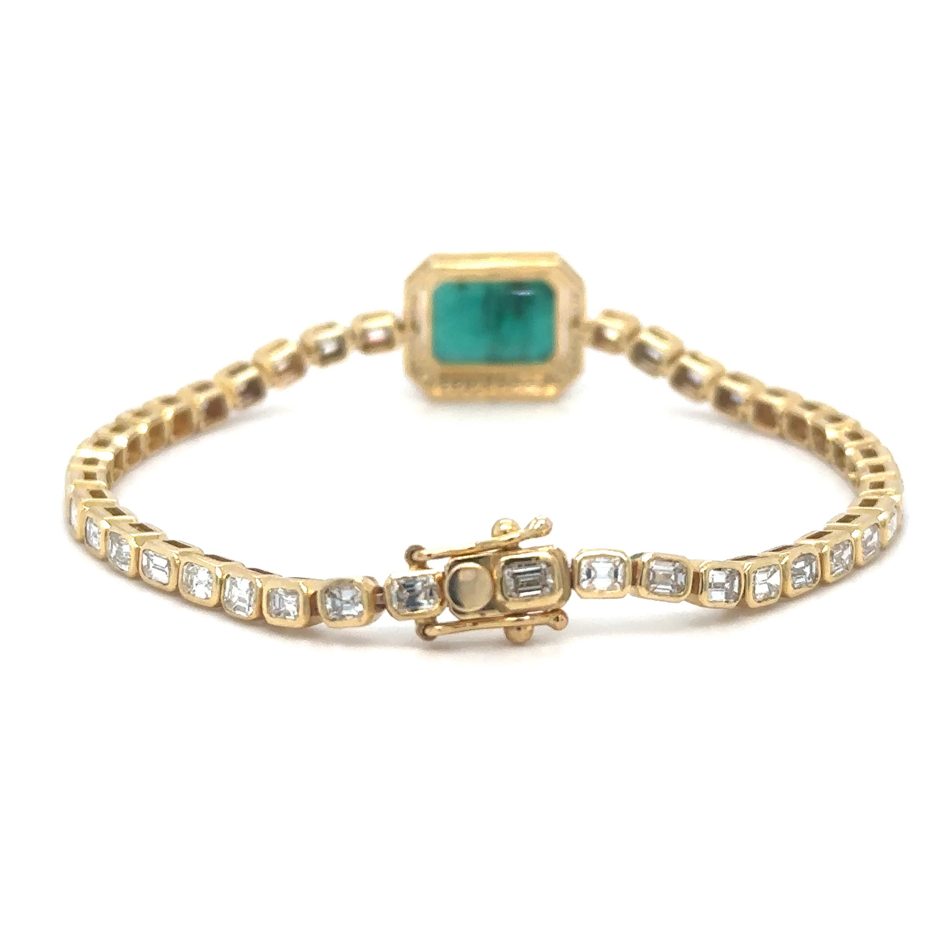 18KT YELLOW GOLD EMERALD OCT AND DIAMONDS TENNIS BRACELET