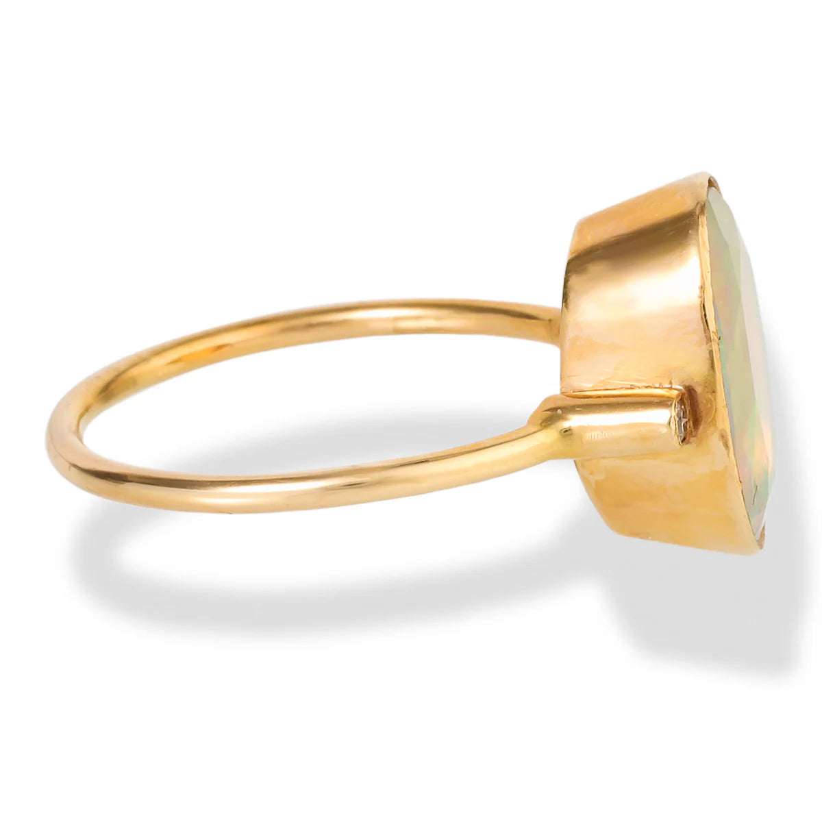18KT YELLOW GOLD DIAMOND/OPAL RING