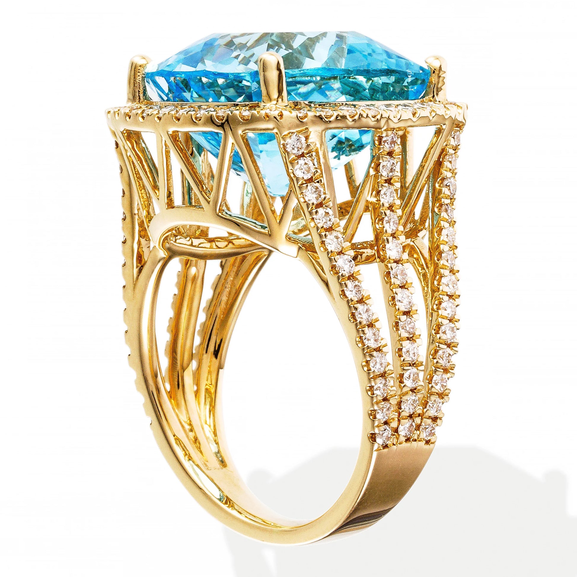 14KT YELLOW GOLD DIAMOND SKY BLUE TOPAZ CUSHION SHAPE RING