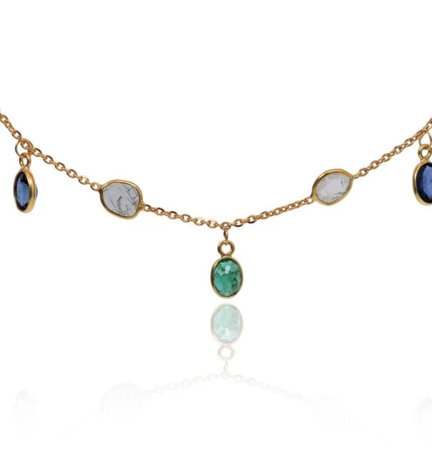 18KT DIAMOND SLICE EMERALD BLUE SAPPHIRE OVAL NECKLACE