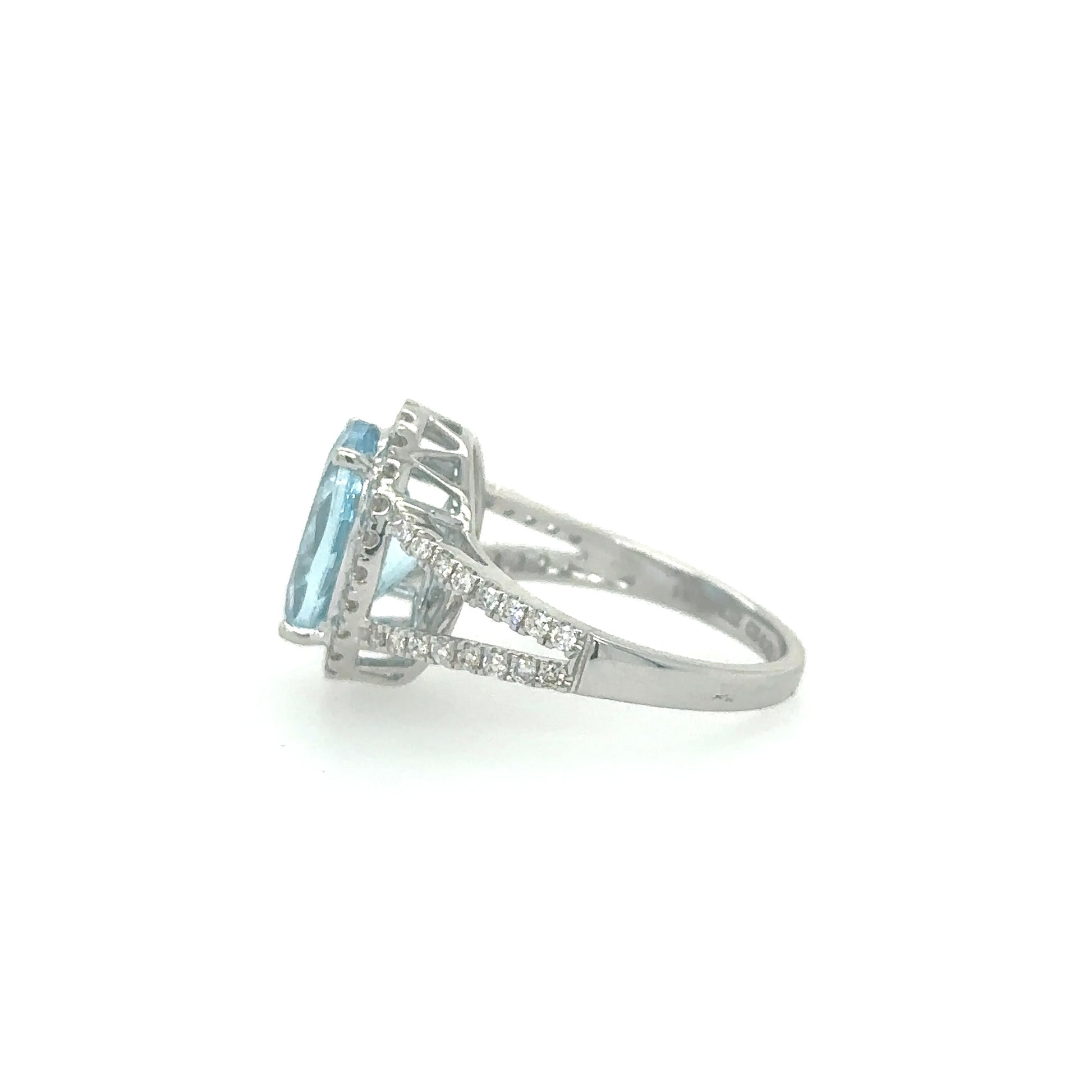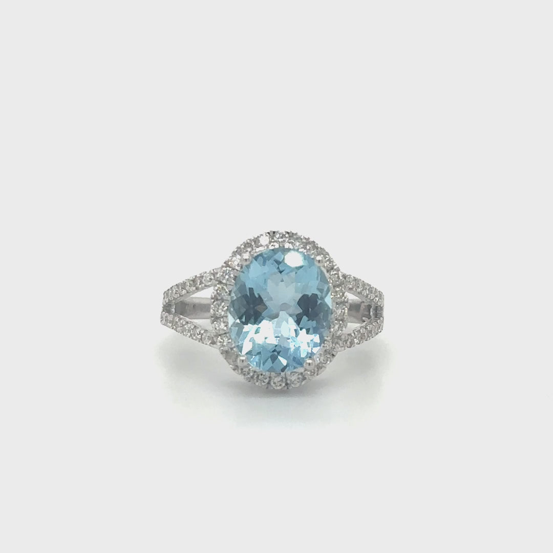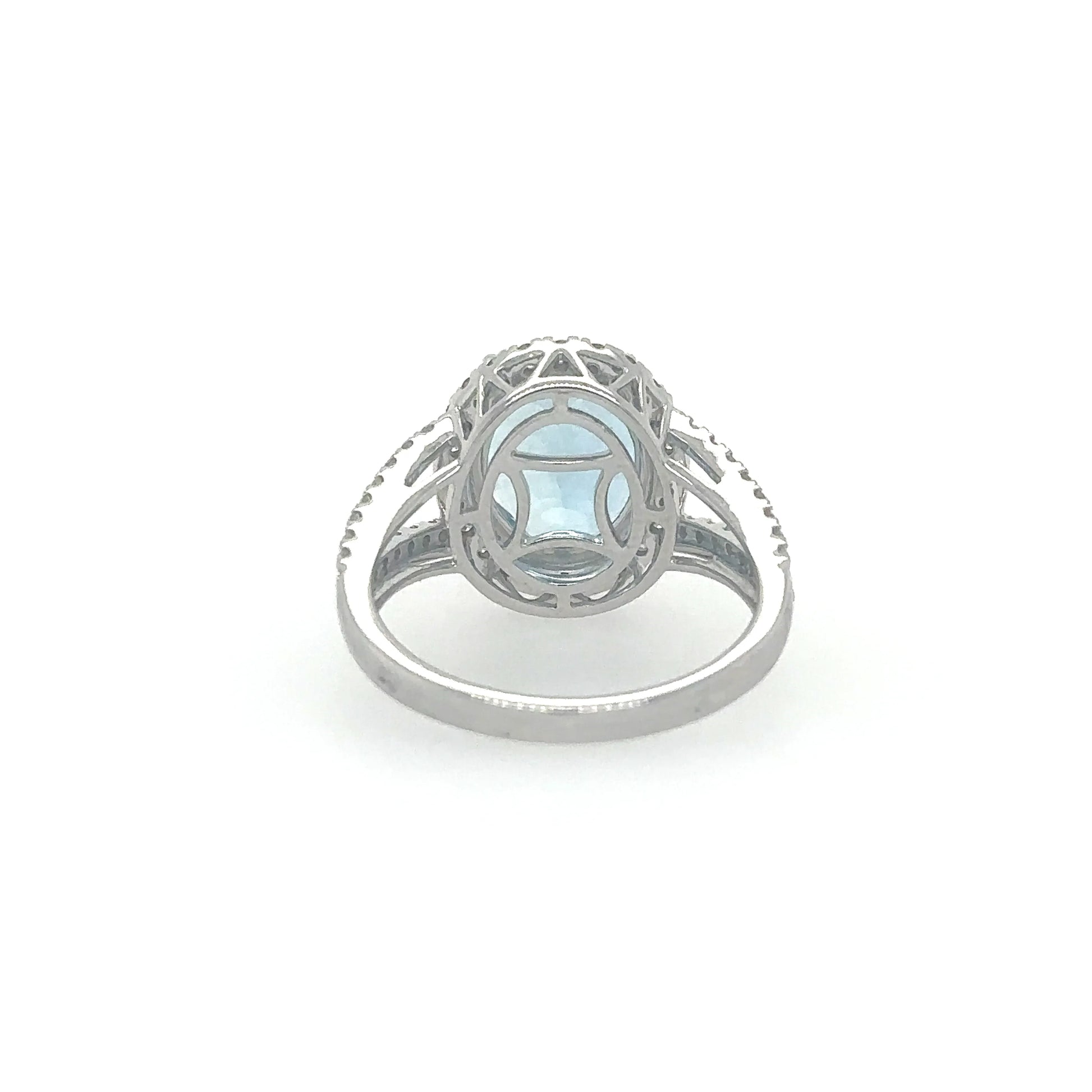 OVAL SHAPE AQUAMARINE RING WITH DIAMONDS
