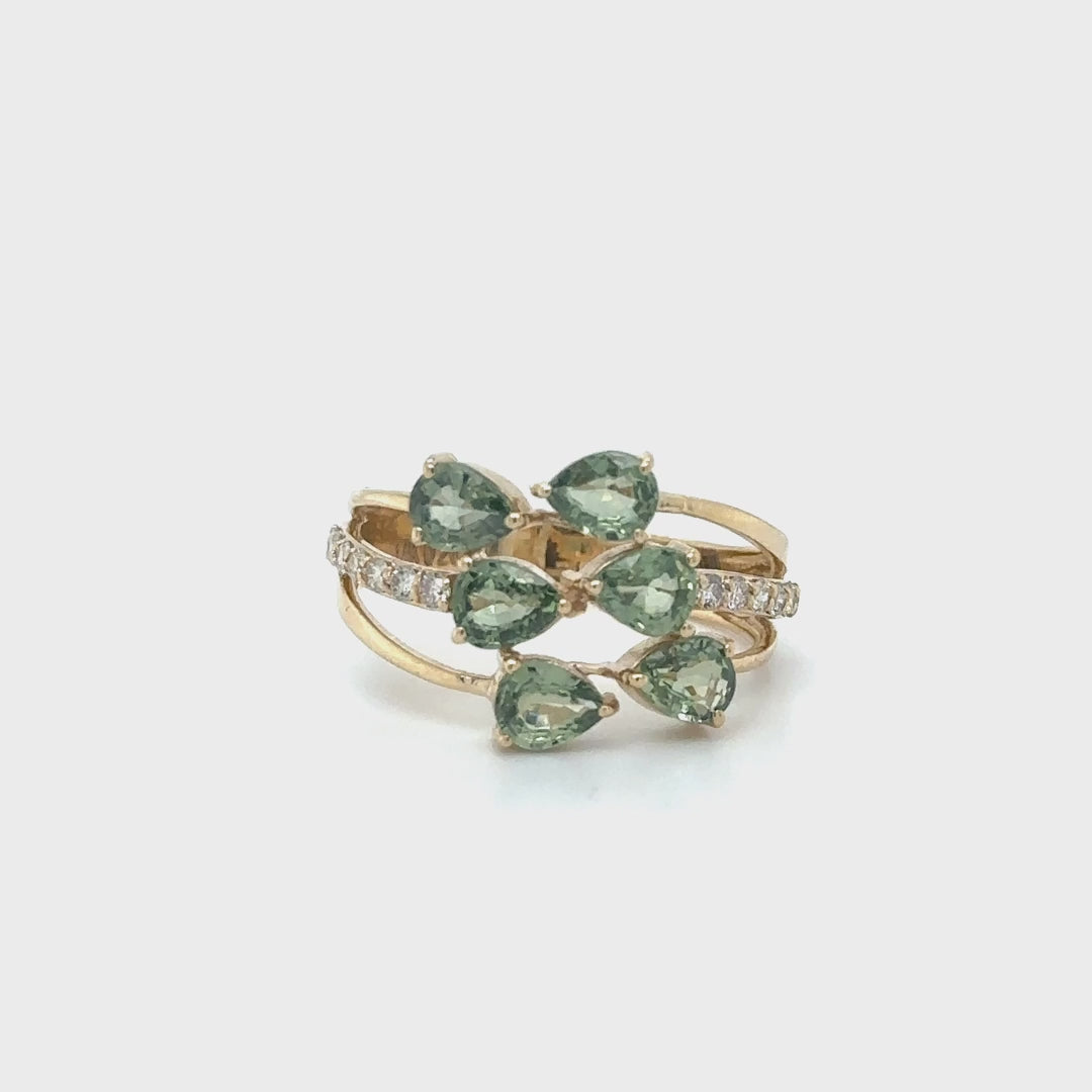 YELLOW GOLD GREEN SAPPHIRE DIAMOND RING