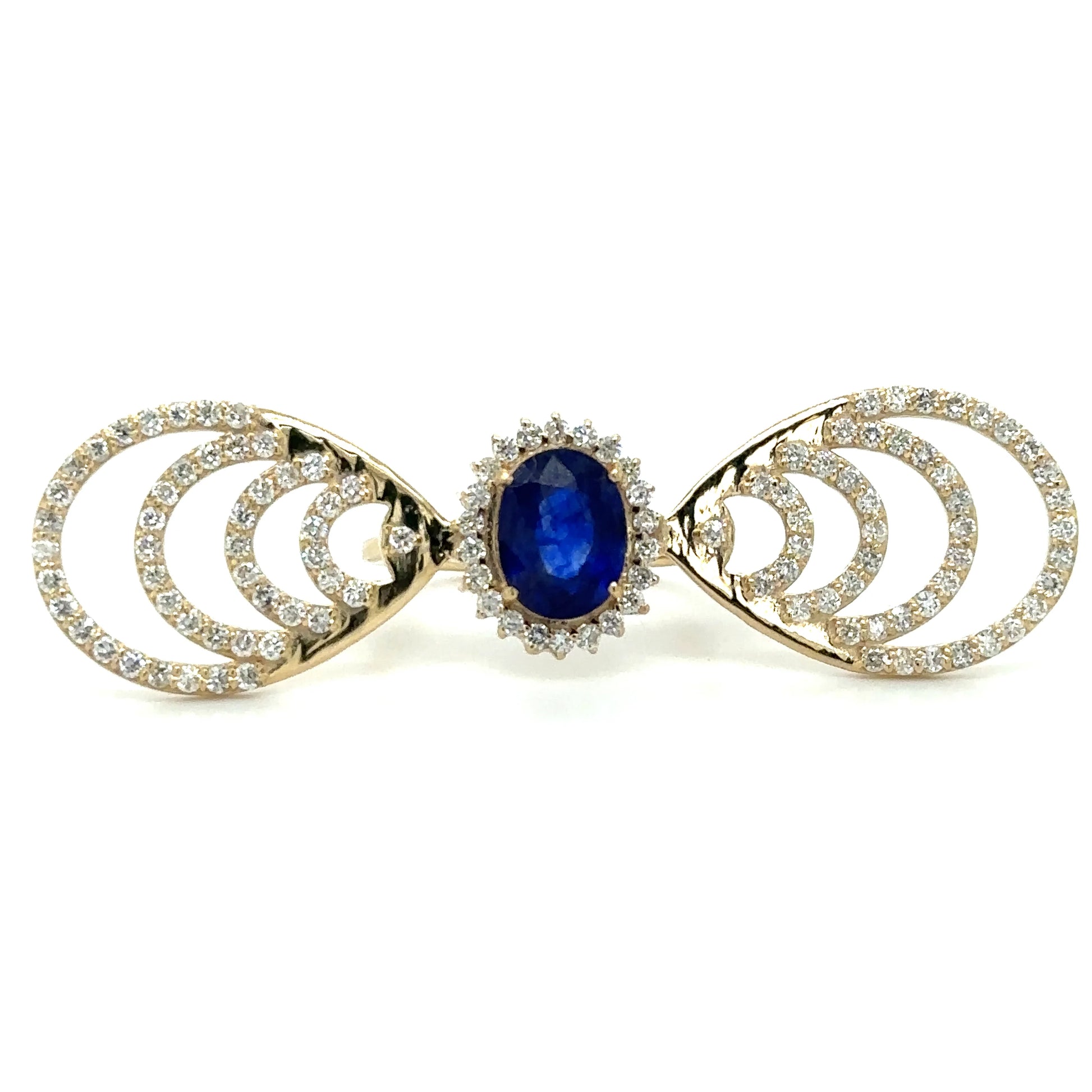YELLOW GOLD RING WITH SAPPHIRE AND DIAMONDS