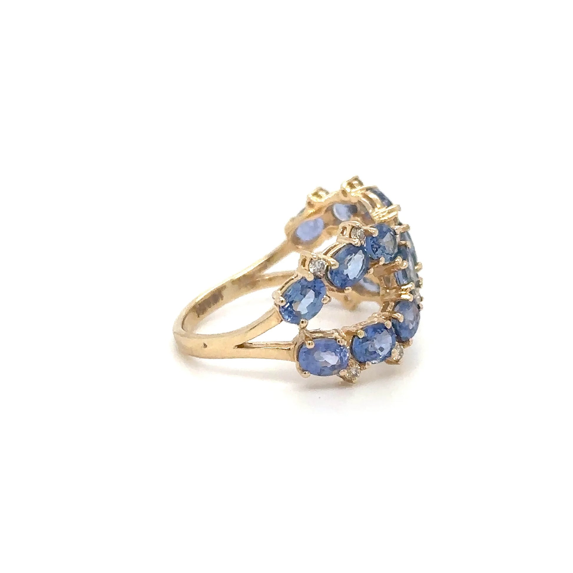 14KT YELLOW GOLD RING WITH SAPPHIRE AND DIAMONDS