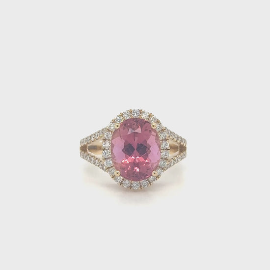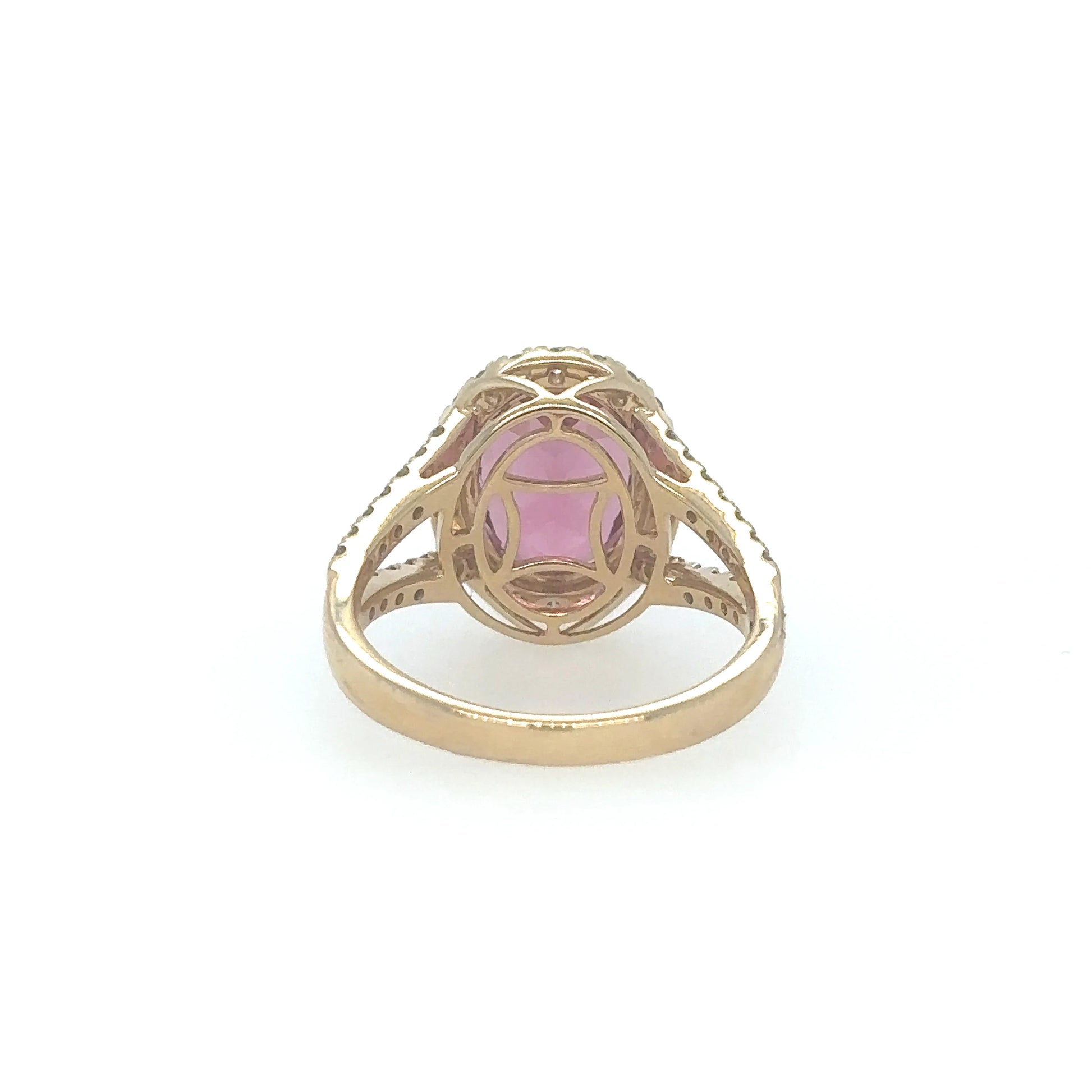 14KT YELLOW GOLD RUBELLITE (PINK TOURMALINE) RING WITH DIAMONDS