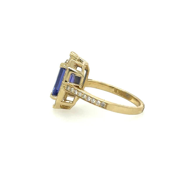14KT YELLOW GOLD TANZANITE RING WITH DIAMONDS